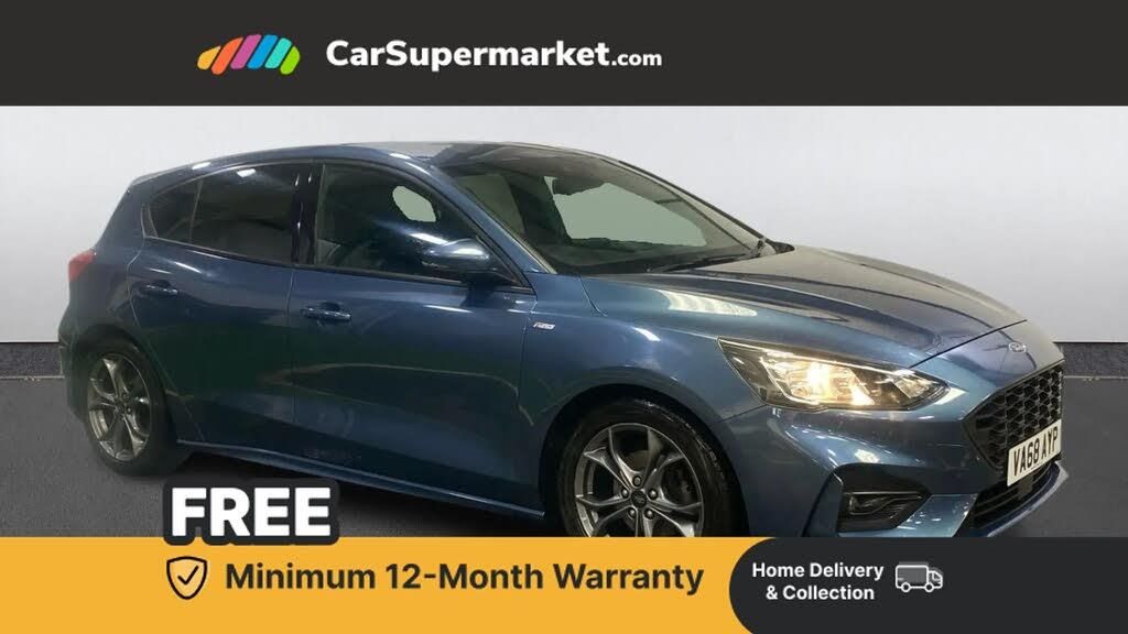 Apple CarPlay, Android Auto, Lane Departure Warning;This Ford Focus ST-Line in blue offers a sporty design with a standard specification. Highlights include Apple CarPlay, Android Auto, and lane departure warning.