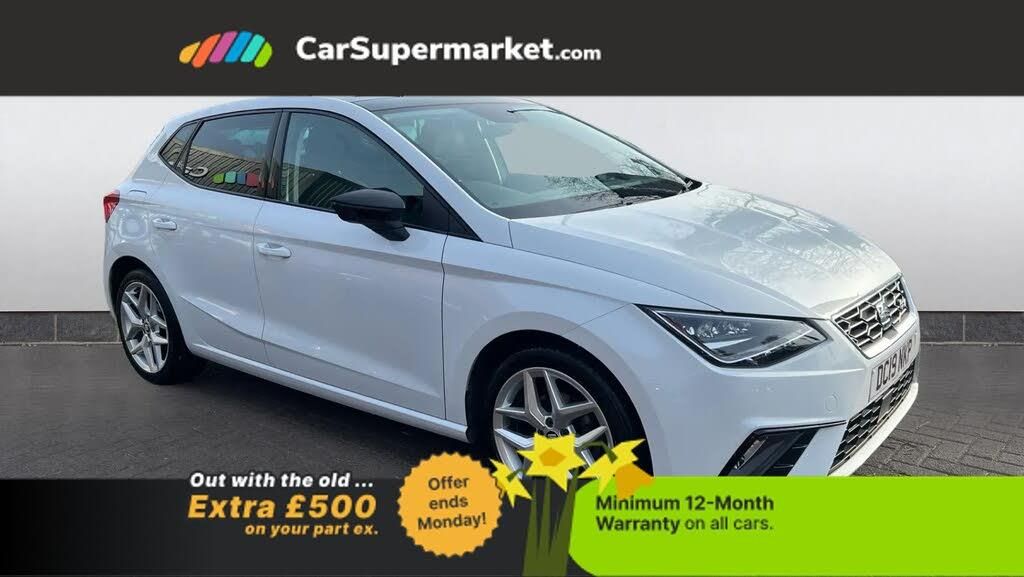 'Lights On' Reminder warning buzzer,Bluetooth Handsfree Phone Connection,Cruise control,Digital clock,Full Link Smartphone Integration with Mirror Link, Apple Car Play, Google Android Auto,Low fuel warning light,Outside temperature gauge,Power Steering,Satellite navigation system with 3D mapping, 8" touch screen, voice control and additional USB port,SEAT Drive profile,SEAT logo boot release,Trip computer,Sports suspension,6 speakers,Auxiliary input socket,CD player,Digital Audio Broadcast (DAB) Tuner,Radio/MP3 player,SD card slot,SEAT USB media cable,Steering wheel mounted controls,USB port,Anti theft roof antenna,Auto dimming rear view mirror,Automatic headlights,Automatic rain sensing wipers,Body colour bumpers,Body colour door handles,Brilliant black door mirrors,Chrome front grille frame,Chrome grille,Coming/leaving home lighting function,Cornering front fog lights,Dark tinted rear windows,Electric folding door mirrors,Electric front windows,Electric headlight adjustment,Electrically adjustable and heated door mirrors,Exclusive FR rear bumper,Full LED headlights,LED daytime running lights,LED tail lights,Rear fog lights,Twin exhaust pipes,3 rear headrests,60/40 split folding rear seat,Air conditioning,Door and steering wheel ice metal decorative inserts,Driver's sunvisor with ticket holder/vanity mirror,Dust/pollen filter,Flat bottomed perforated leather steering wheel with red stitching and FR logo,Front courtesy lights,Front cupholders x 2,Front reading lights,Gear shift indicator,Glovebox,Height adjustable driver's seat,Height adjustable front/rear head restraints,Height adjustable passenger seat,Height/reach adjust steering wheel,Illuminated boot,Instrument lighting with brightness control,Leather handbrake,Multi-colour ambient interior lighting,Nora cloth upholstery,Passenger sunvisor,Rear top tether child seat ISOFIX attachment,Sports seats,Steering column mounted gear shift paddles,Full LED headlight pack - Ibiza,3 point seatbelts on all 3 rear seats,ABS,Active front headrests,Child locks on rear doors,Curtain airbags,Driver/Front Passenger airbags,ESP+EBA,Front assist (AEB),Front passenger airbag deactivation,Front side airbags,Hill hold control,Multi-Collision braking,Rear disc brakes,Seatbelt warning,Tiredness recognition system,Tyre pressure monitoring system,Electronic engine immobiliser,Locking wheel bolts,Remote central locking + deadlocks,Volumetric alarm with back up horn,Leather dashboard,17" Dynamic alloy wheels