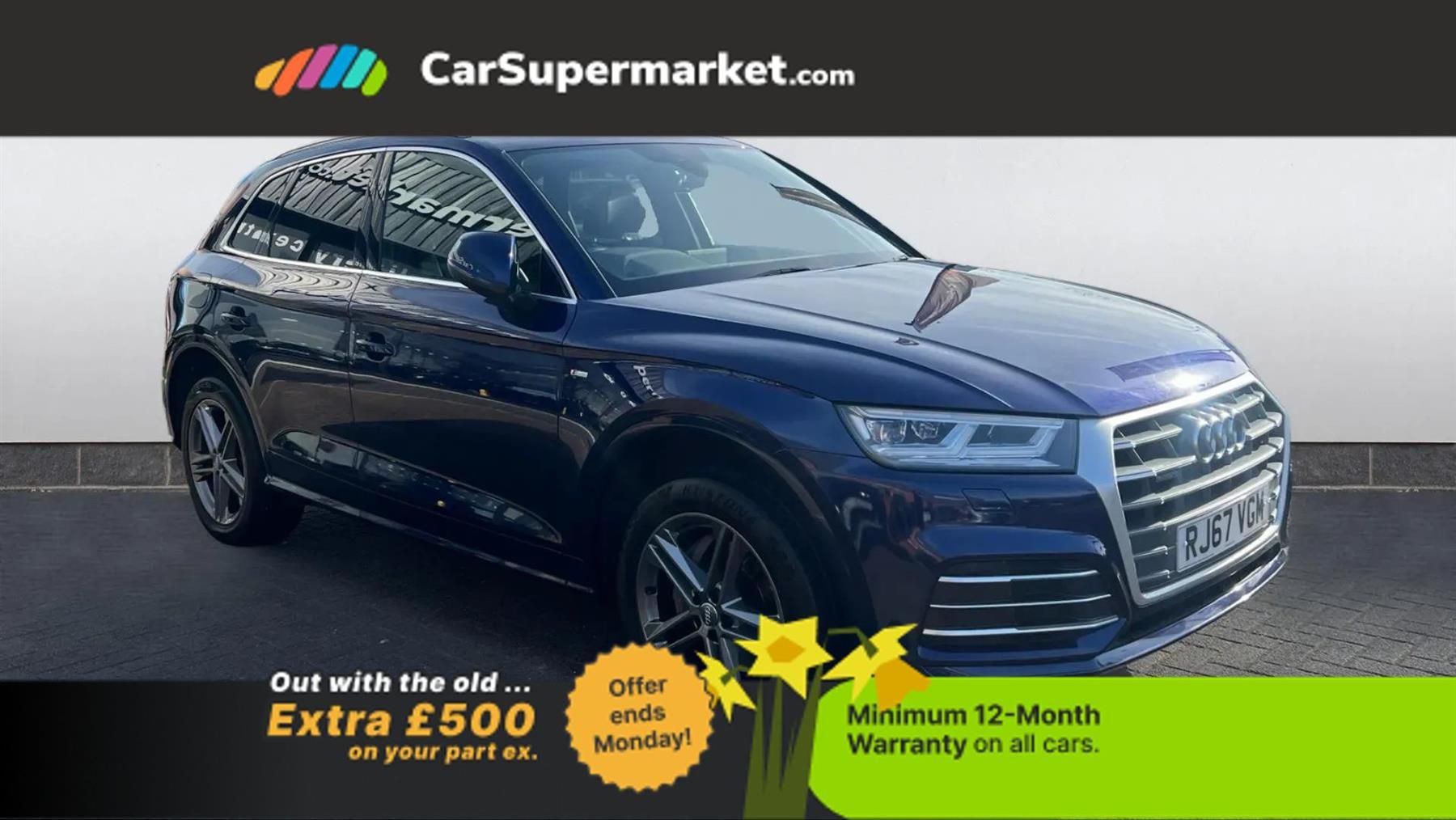 Wireless Phone Charging, Apple CarPlay/Android Auto, Sat Nav, Audi Music Interface, Digital Radio, Privacy Glass;The Audi Q5 2.0 TDI Quattro S Line S Tronic finished in Blue combines premium SUV comfort with the confidence of Audi?s Quattro all-wheel-drive system. The S Line specification includes 19-inch alloy wheels, heated leather seats and a refined interior with dual-zone climate control. Technology features include satellite navigation, wireless phone charging, Apple CarPlay and Android Auto integration, the Audi Music Interface and digital radio. Privacy glass and front and rear parking sensors add practicality, while a rear camera assists with parking. The vehicle has four recorded services, with the most recent carried out in September 2025 at approximately 71,000 miles, dated 13/09/2025.