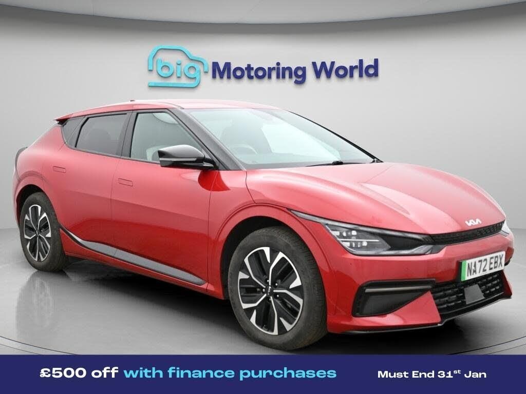 £500 towards your finance depo-Our Kia EV6 is finished in Red. Specification includes a range of fantastic features including £500 towards your finance deposit, 19'' Alloy wheels, Apple CarPlay, Adaptive Cruise Control, Privacy Glass, Heated Seats, Heated Steering Wheel, Internet, Bluetooth, Parking Sensors Specification information is supplied by CAPHPI and may vary to the actual car. This data does not form any part of a buying contact. Please check specification prior to purchase in-store. The MOT is valid until February 2027, visit bigmotoringworld.co.uk for more photos, a 360 tour, service history and a free HPI report.Were BIG on peace of mind and this Red Kia EV6 has completed our comprehensive 200 point inspection and passed all checks. Its ready for you to drive away with immediate collection in-store. We include a 90-day warranty as standard plus an option to extend for up to 3 years.Reserve this car exclusively for you, safely and securely at bigmotoringworld.co.uk, with a fully refundable £99 deposit. Test drive before you buy, with no commitment, no hassle and a completely haggle free experience. Still searching and want to see thousands more cars? We are BIG on choice with over 8000 cars to choose from.Visit our award winning web site bigmotoringworld.co.uk.Were Big Motoring World and were BIG on what matters to you.