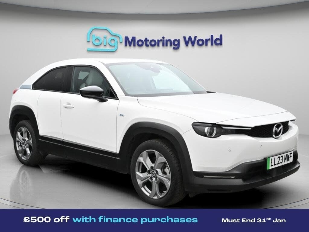£500 towards your finance depo-Our Mazda MX-30 is finished in White. Specification includes a range of fantastic features including £500 towards your finance deposit, Head up Display, 18'' alloy wheels, Adaptive Cruise Control, Privacy Glass, Heated Seats, Heated Steering Wheel, Bluetooth, Blind Spot Assist, Bose Specification information is supplied by CAPHPI and may vary to the actual car. This data does not form any part of a buying contact. Please check specification prior to purchase in-store. The MOT is valid until March 2027, visit bigmotoringworld.co.uk for more photos, a 360 tour, service history and a free HPI report.Were BIG on peace of mind and this White Mazda MX-30 has completed our comprehensive 200 point inspection and passed all checks. Its ready for you to drive away with immediate collection in-store. We include a 90-day warranty as standard plus an option to extend for up to 3 years.Reserve this car exclusively for you, safely and securely at bigmotoringworld.co.uk, with a fully refundable £99 deposit. Test drive before you buy, with no commitment, no hassle and a completely haggle free experience. Still searching and want to see thousands more cars? We are BIG on choice with over 8000 cars to choose from.Visit our award winning web site bigmotoringworld.co.uk.Were Big Motoring World and were BIG on what matters to you.