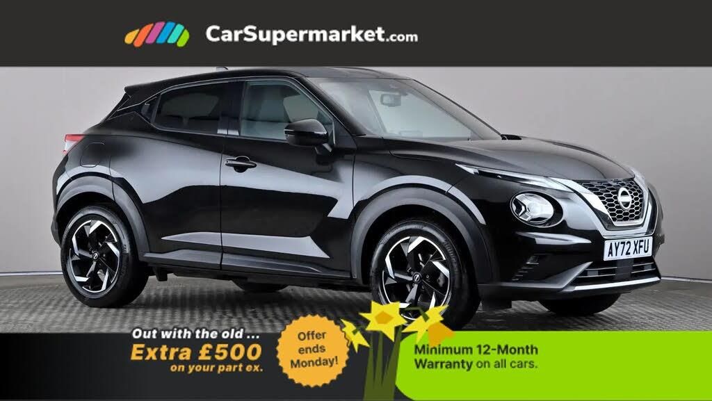 Apple CarPlay, Android Auto, Lane Departure Warning, Sat Nav, Traffic Sign Recognition, Bluetooth, Digital Radio, Privacy Glass, Automatic Climate Control;Nissan Juke 1.0 DiG-T 114 N-Connecta (Black) A well-equipped compact crossover with modern tech. Includes Apple CarPlay/Android Auto, sat nav, a rear view camera, lane departure warning, traffic sign recognition, climate control and privacy glass. Minimum 12-month warranty. Last serviced 10/11/2025. MOT due 07/12/2026.