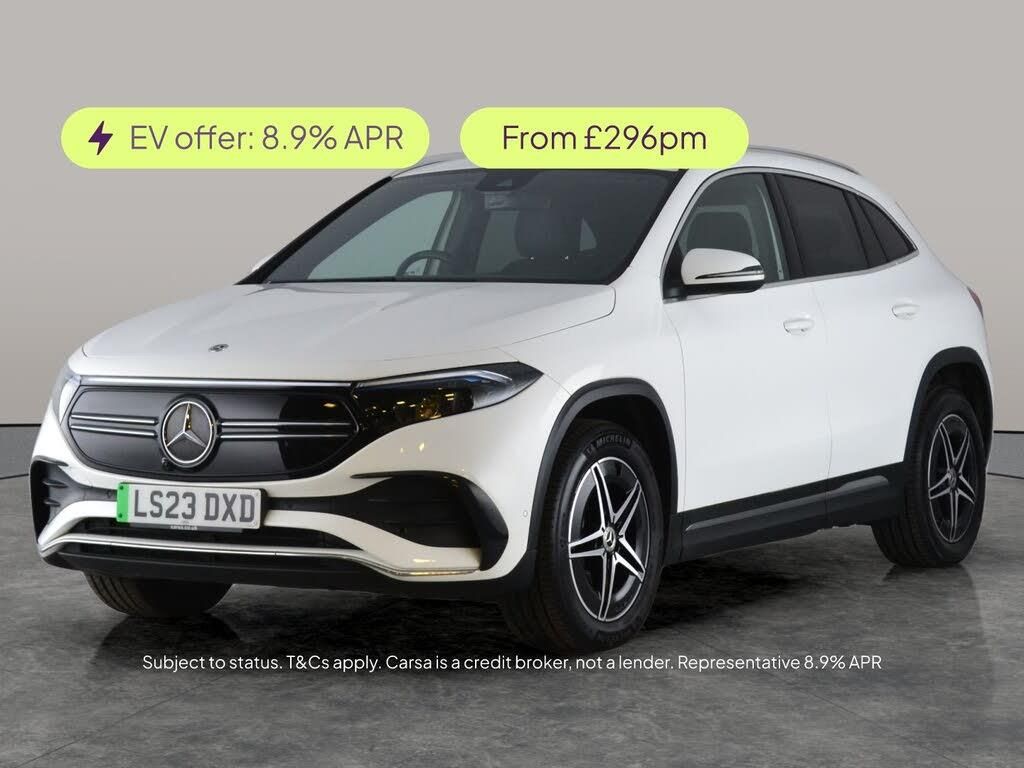 Experience the future of driving in this stunning white Mercedes-Benz EQA SUV. Enjoy premium comfort with heated seats and the Comfort Pack, while tech features like Apple CarPlay, WiFi, and Bluetooth audio streaming keep you connected. Navigate with ease thanks to the crisp reversing camera and Sat Nav. Safety is top-notch with Active Lane Assist, Blind Spot Assist, and Lane Departure Warning. LED headlights complete this stylish, electric ride. Discover a smarter, more refined way to drive. 3 services recorded, last serviced on 16/03/2026 at 27,475 miles. MOT to 26/03/2027. Visit our website for service history, online valuation, full vehicle specification plus multiple images. This vehicle is VAT qualifying. Any feature/option specified here is from 3rd party data. We cannot guarantee the accuracy of any specification supplied by a 3rd party. We recommend that you physically check the specification of the vehicle on site prior to purchase. This information does not form part of the buying contract. Terms & Conditions apply. We have over 2,000 cars available from our 10 national branches, check our website to see all our stock. Our Trustpilot rating is 4.4/5 with over 9,000 reviews.