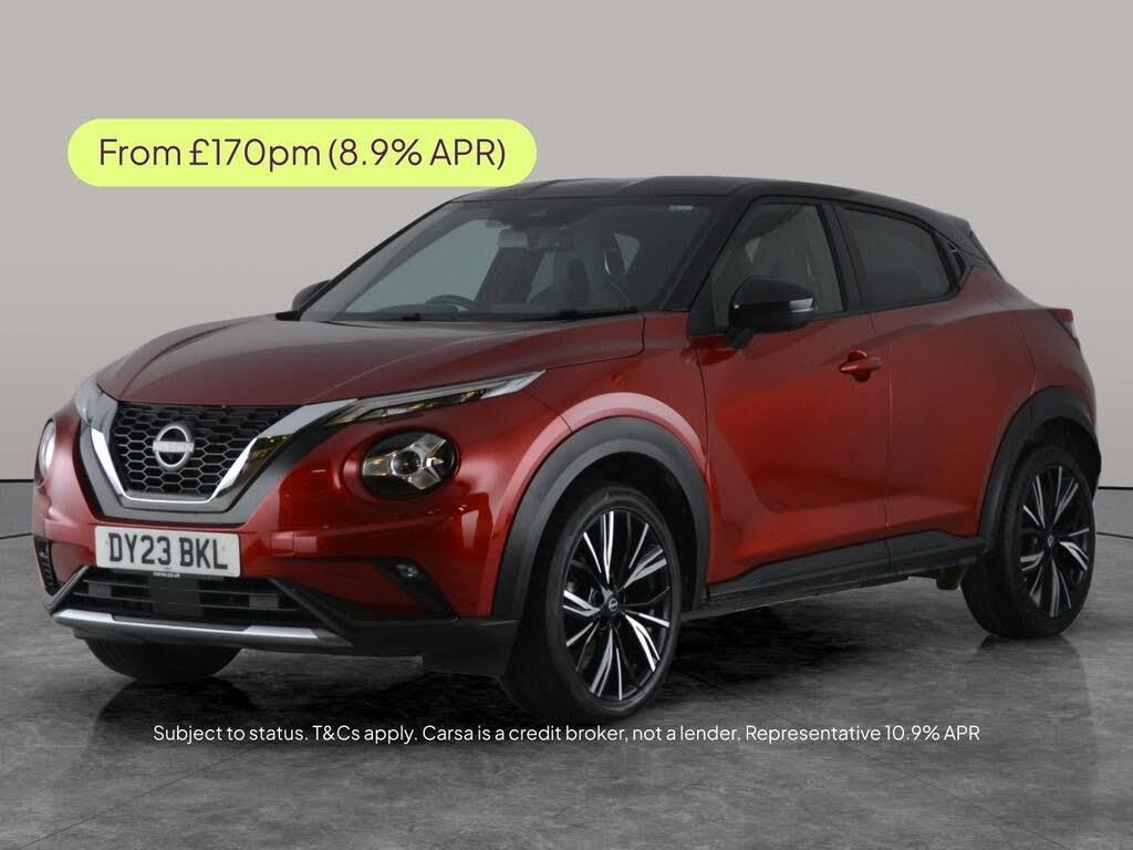 Experience driving with style in this red Nissan Juke. Enjoy a premium BOSE sound system, Apple CarPlay, and a surround view with a 360-degree camera and reversing camera for ultimate confidence. Relax in heated leather seats and keep warm with the heat pack and heated steering wheel. Keyless entry adds convenience, while LED headlights and intelligent lane intervention make every journey safer. Factory-fitted sat nav ensures youre always on the right route. A sporty, feature-packed SUV ready for your next adventure! 3 services recorded, last serviced on 19/02/2026 at 26,682 miles. MOT to 12/03/2027. Visit our website for service history, online valuation, full vehicle specification plus multiple images. This vehicle is VAT qualifying. Any feature/option specified here is from 3rd party data. We cannot guarantee the accuracy of any specification supplied by a 3rd party. We recommend that you physically check the specification of the vehicle on site prior to purchase. This information does not form part of the buying contract. Terms & Conditions apply. We have over 2,000 cars available from our 10 national branches, check our website to see all our stock. Our Trustpilot rating is 4.4/5 with over 9,000 reviews.