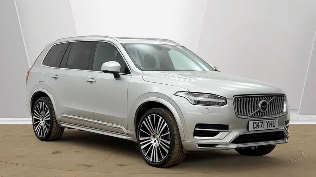 Blond headlining, 8-speed Automatic transmission, Pedals, Orrefors® Crystal Gear Lever (automatic only), PTC air heater, Third row air conditioning, 4-Zone Electronic Climate Control, Passenger Airbag Cut Off Switch, Dual Stage Driver and Passenger Airbags, Driver Knee Airbag, Panoramic Roof, Road Sign Information, Driver Alert Control with Lane Keeping Aid, Inscription front grille in Matte silver with chrome frame, Full-LED headlights, Headlight Cleaning System, 12-inch driver display, Pilot Assist (up to 80mph) Adaptive Cruise Control with Distance Alert & Queue Assist, Adjustable Speed Limiter, My Volvo, Fresh Air Subwoofer, DAB (Digital Audio Broadcasting) Radio, Premium Sound by Harman Kardon, Autofolding Heated Power Door Mirrors, Memory for Passenger Seat, Wireless/Inductive Mobile Phone Charging, Central locking controls. front and rear doors, Colour Adapted Rear View Mirror Covers, Double locking, Private Locking, Dark Tinted Rear Windows, BLIS? and Cross Traffic Alert, Anti-theft Alarm including Immobiliser. Volume Sensor and Level Sensor, Power Child Locks, Keyless Drive (includes Keyless Entry and Keyless Start), CleanZone with advanced air cleaner PM 2.5, Voice Activated Control for Key Functions, Digital owners manual, Textile mats. third-row, Grey Ash decor, Tailored dashboard and door top panels, Ventilated nappa leather upholstery, Front Seat Backrest Massage, Power Driver's Seat with Memory for Seat, Power Passenger Seat, Ventilated Front Seats, Heated Front Seats, Heated Rear Seats - Outer Positions, Power folding outer rear head restraints. second row, Seven individual seats, Mechanical release second seat row, Power side bolsters, 4-Way Lumbar Support, Exclusive textile mats. Charcoal, Load Protection Net, Flexible Load Floor with Grocery Bag Holder, Front and 2nd Row Centre Armrest with Storage and Cupholders, Integrated booster cushion, Illuminated Vanity Mirrors, Rear Footwell and Side Step Illumination, 12v Socket - Cargo Area, Load cover. semi-automatic, Integrated Sun Curtain - Rear Doors, Autodimming Inner & Exterior Mirrors, Hidden storage compartment, Power Cushion Extension. Driver, Braking system, Indirect Tyre Pressure Monitoring System (iTPMS), Active chassis with air suspension, Oncoming Lane Mitigation, Rear Collision Warning and Mitigation Support, Hill Descent Control, Slippery road alert, EBL. Flashing Brake Light and Hazard Warning, Heated Steering Wheel, Tailored leather steering wheel Charcoal/Blond, Adaptive power steering, 22 20 Spoke (Diamond Cut/Black), Temporary mobility kit, Locking Wheel Nuts, Heated Front Windscreen, Washer Nozzles, Body-coloured door handles with bright deco and Illumination with Puddle lights, Inscription front grille with chrome bar insert and chrome frame, Cargo opening metal scuff plate, Illuminated Recharge aluminium front tread plates, Chrome Window Surround, Bright integrated roof rails, Glossy chrome lower door moulding with embossed Recharge logotype. side, Tempered side windows, Sensus Navigation, Front and Rear Park Assist, Ticket Holder, Electric cabin heater and cooler, 360° camera, Chromed plastic protection cap, 7m 3.5 kW Type2 / Mode 3 Charge Cable, Apple CarPlay, Comfort Front Seats, 7m Charge Cable with 3 Pin Plug, Whiplash injury protection system, IC (Inflatable Curtains) - Full Length, Side impact protection, ISOFIX Attachment (Outer Rear Seats), Safety belts, Rain Sensor - Automatic Windscreen Wiper Activation, Steering Wheel Remote Infotainment Control, Humidity sensor, Start/Stop technology, Bluetooth® Handsfree System