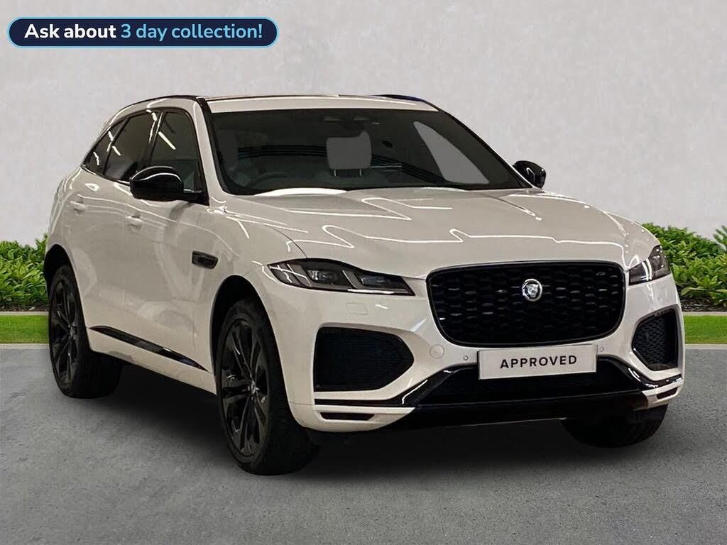 This 2024 Jaguar F PACE D200 R Dynamic HSE Black 90th Anniversary Edition is a superb example, having had only one owner since new. This striking vehicle boasts a powerful 2.0 litre diesel engine, delivering an impressive 0-60mph in just 7.8 seconds, all managed through a smooth four wheel drive system. Its Euro 6 emission class ensures efficiency, while the substantial 2400 kg towing weight offers versatility. Inside, you'll find a host of premium features including LED headlights with signature daytime running lights, a fixed panoramic roof for an airy cabin feel, and convenient wireless device charging. For added safety and comfort, it includes blind spot assist and a heated steering wheel, making every journey a pleasure. Experience exceptional performance and practicality with this F PACE. Its fuel economy is a notable highlight, achieving up to 43 miles per gallon, which, combined with its low CO2 emissions, makes it a more economical choice compared to many similar vehicles. The generous boot space provides ample room for all your luggage or shopping needs. These highlights demonstrate how this Jaguar F PACE offers a superior driving experience, blending dynamic capability with everyday usability and advanced technology.