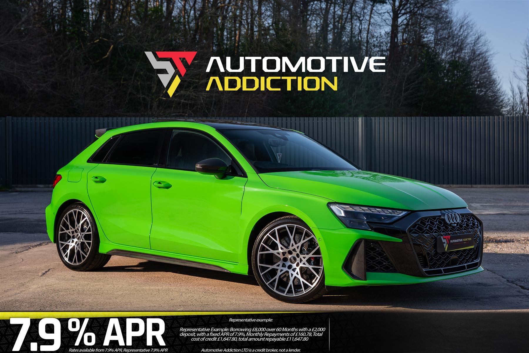 2025 Audi RS3 8.5Y (Carbon Vorsprung) Sportback 2.5 TFSI S-Tronic Quattro 400PS | Kyalami Green | 7.9% APR |