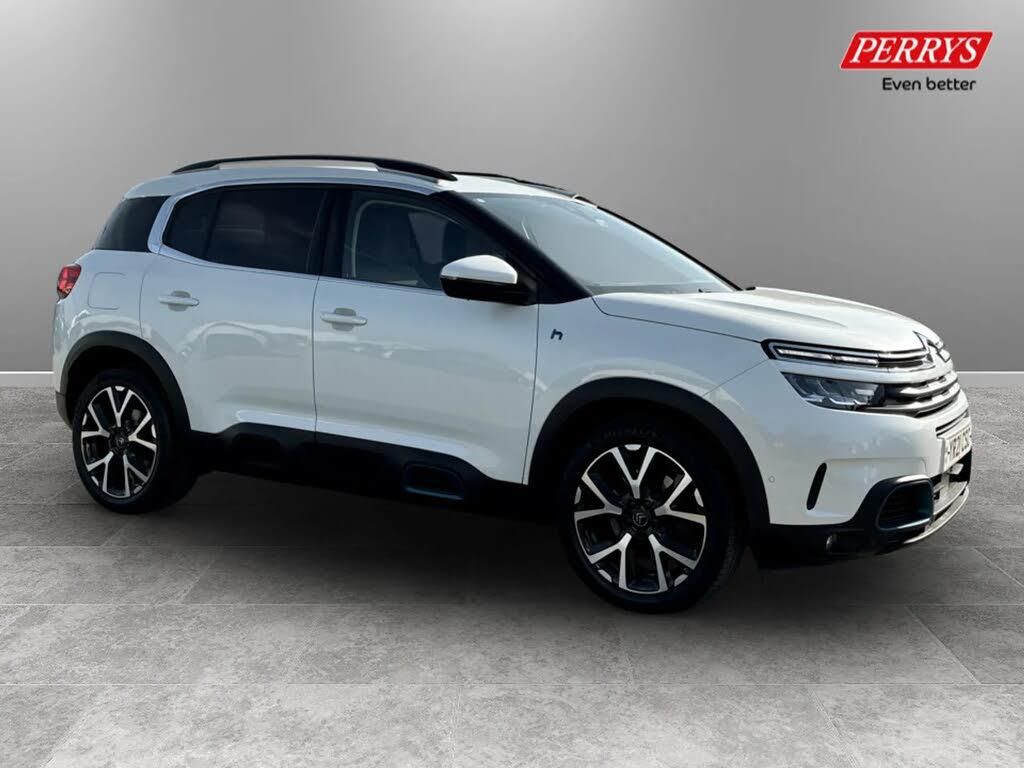 12.3" customisable TFT instrument display,Active cruise control with stop and go,Active lane departure warning system,Bluetooth telephone facility,Brake mode option on gear selector,Central 8" capacitive touch screen,Citroen connect box emergency assist system,Citroen connect Nav with connect box,Coffee Break Alert,Custom interface for instrument cluster and touchscreen,Driver attention alert system,Driving mode selector on central console,Eco+ mode,Electric power steering,Extended traffic sign recognition and recommendation,Exterior temperature indicator with ice warning,Highway driver assist,Mirror screen with Apple CarPlay and Android auto,Multi function trip computer,Programmable cabin pre-conditioning and deferred charging,Speed limit recognition and recommendation,Speed limiter,Top rear vision reversing camera,7.4 kW onboard charger,Mode 3 charging cable with type 2 connectors,Multi link rear suspension with Progressive Hydraulic Cushions,2 USB sockets,Auxiliary input socket,DAB (Digital Audio Broadcasting), AM/FM and MP3 compatible radio with two tweeters and four speakers,Voice recognition for radio, navigation and telephony features,3D effect LED rear lights,Acoustic laminated windscreen with rain and brightness sensors,Acoustically insulated drivers and passengers side windows,Airbump panels with colour insert on lower portion of the doors,Auto headlights,Automatic hazard light activation upon heavy brake application,Automatic triggered rear windscreen wiper in reverse gear,Black upper and lower grille,Body colour door handles,C5 Aircross monogram on boot rear,Chrome exhaust trim,Citroen logo and monogram on rear,Dark tinted rear windows and rear windscreen,Electric, heated and folding door mirrors with integrated LED indicator and kerb puddle light,Frameless auto dimming electrochrome rear view mirror with blue LED electric driving mode indicator,Front fog lights with cornering function,Front windscreen wiper with magic wash cleaning system,Gloss black finish on A and B pillar and aerodynamic trim,Guide me home headlight function,Halogen rear fog lights,Halogen rear number plate lights,Headlights left on audible warning,Heated rear windscreen with integrated antenna,High level LED centre brake light,HYBRID badging to front wings and tailgate,Intelligent high beam headlights (auto dipping main beams),LED daytime running lights,LED front indicators,LED Headlights,Longitudinal roof bars,Matt black rear bumper fascia,Matt black side sill,Matte black lower rear skirt,Matte black wheel arch extensions,One touch electric front/rear windows with pinch protection,Painted front bumper,Painted rear bumper,Rear side wing doors,Roof coloured rear spoiler with stainless edging trim,Satin chrome C signature,Satin chrome window surround,Twin exhaust effect trim,12V socket in boot,12V socket in cabin,2 Central illuminated cup holders,2 way lumbar adjustment for driver,2x Rear coat hooks,3 Independent full size rear seats with adjustable recline angle,3x Grab handles retractable with damping,Advanced comfort front and rear seats,Air recirculation when reverse gear is engaged,Aluminium pedals and foot rest,Anti odour and pollen filter,Central front armrest with butterfly wing opening and illuminated storage compartment,Dimmable white mood lighting,Dual zone automatic climate control,Fixing rings 4 in load compartment,Front + rear carpet mats,Front and rear LED welcome/LED rear reading lights,Front door pockets store up to 1.5L bottle and A4 note pad,Front seat back map pockets,Gear lever in satin chrome,Height and reach adjustable leather steering wheel with 2 control zones and satin chrom inserts,Hinged rear parcel shelf,Isofix child seat preparation for front passenger seat,Leather effect dashboard fascia,Leather effect interior door handles,Manual passenger seat adjustment (height, fore/aft and backrest angle),Multi function leather steering wheel with two command blocks,Open central storage area below touch screen,Open central storage compartment,Open storage area next to gear selector,Rear door pockets store up to 75mm bottle,Rear passenger air vents,Satin chrome digital instrument panel and touchscreen trim,Satin chrome interior door handles,Seatbelt unfastened on the move audible and visual alert for front and rear seats,Single front passenger seat,Smooth opening flocked glove box with lighting,Stainless steel front Citroen embossed sill scuff plates,Storage compartment for charging cable under boot floor,Safety plus pack with blind spot monitor - C5 Aircross,2x Isofix child seat fitting on outer rear seats,3x Rear three point retractable seatbelts with pretensioners and force limiters in the outer rear seats,ABS/EBD,Adaptive driver and front passenger airbags with passenger airbag deactivation function,Collision risk alert,Driver and front passenger side airbags,DSC (Dynamic Stability Control) and ASR (Electronic Anti-skid System),Electric child locking functionality on rear windows and doors