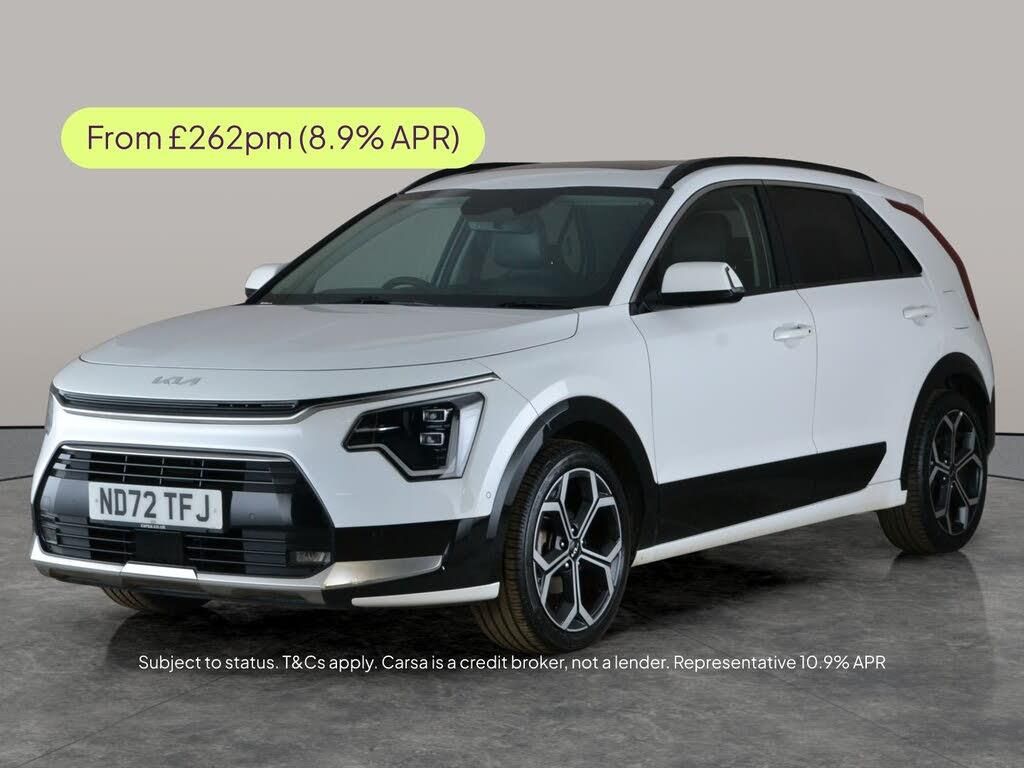 Experience the Kia Niro SUV in striking white, packed with exciting extras for a premium drive. Enjoy a sunroof for airy journeys, head-up display, and smart black roof rails. Delight in luxurious leather seats, all heated alongside the steering wheel for comfort in any weather. Stay connected with Apple CarPlay, navigate confidently with sat nav, and rely on keyless entry. Safety features include LED headlights, park assist, reversing camera, active lane assist, blind spot assist and lane departure warning for peace of mind everywhere you go. 1 service recorded, last serviced on 04/03/2024 at 17,793 miles. MOT to 13/12/2026. Visit our website for service history, online valuation, full vehicle specification plus multiple images. This vehicle is VAT qualifying. Any feature/option specified here is from 3rd party data. We cannot guarantee the accuracy of any specification supplied by a 3rd party. We recommend that you physically check the specification of the vehicle on site prior to purchase. This information does not form part of the buying contract. Terms & Conditions apply. We have over 2,000 cars available from our 10 national branches, check our website to see all our stock. Our Trustpilot rating is 4.4/5 with over 9,000 reviews.