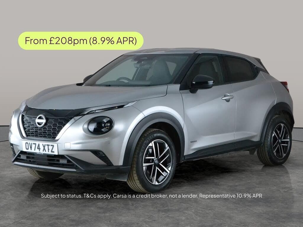 Discover the sleek silver Nissan Juke Hybrid Automatic, designed to make every drive exciting. Enjoy smart tech with Apple CarPlay, digital cockpit, sat nav, and onboard wifi. Safety is a priority with active lane assist, intelligent lane intervention, and lane departure warning. Convenience is at your fingertips with keyless entry, the Nissan Intelligent Key, and a reversing camera. Add striking LED headlights and versatile driving modes, and you have a stylish SUV ready for anything. 1 service recorded, last serviced on 01/08/2023 at 7,332 miles. MOT to 28/09/2027. Visit our website for service history, online valuation, full vehicle specification plus multiple images. Any feature/option specified here is from 3rd party data. We cannot guarantee the accuracy of any specification supplied by a 3rd party. We recommend that you physically check the specification of the vehicle on site prior to purchase. This information does not form part of the buying contract. Terms & Conditions apply. We have over 2,000 cars available from our 10 national branches, check our website to see all our stock. Our Trustpilot rating is 4.4/5 with over 9,000 reviews.