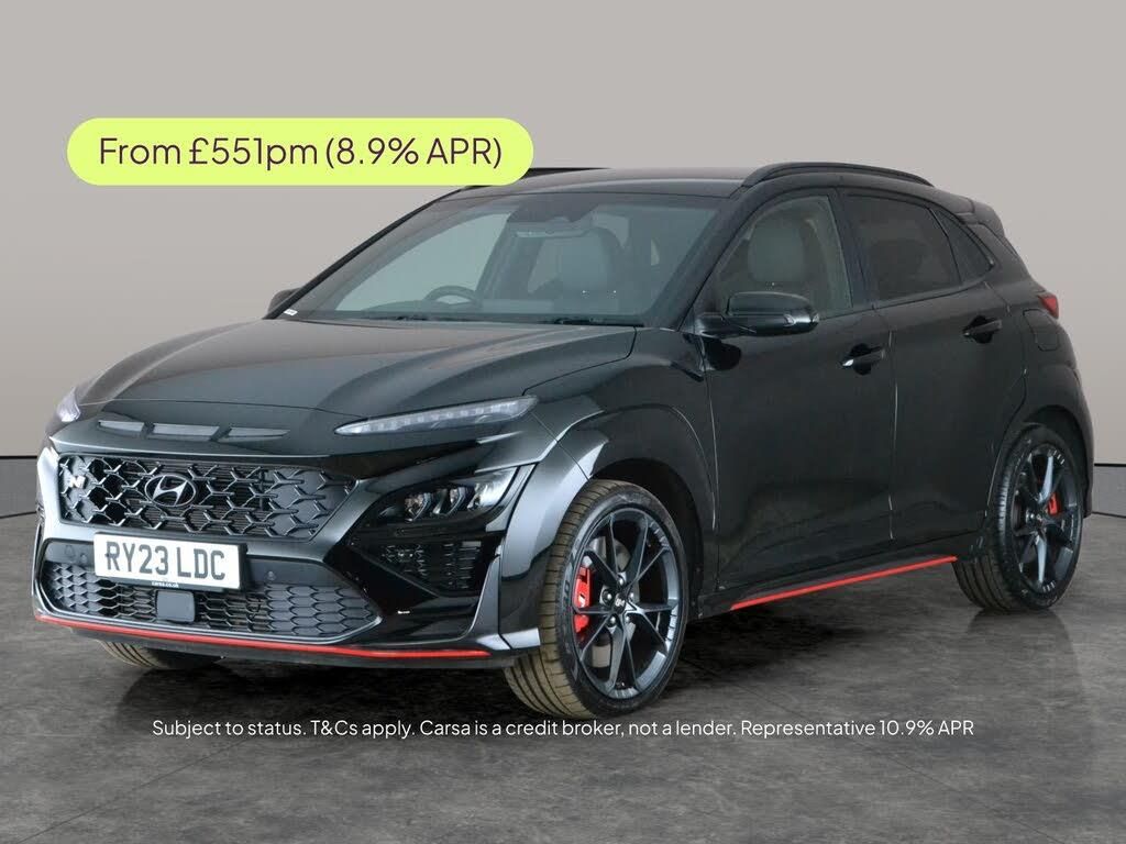 Looking for a dynamic drive? This Hyundai Kona N brings excitement with its powerful automatic performance and sleek black SUV style. Enjoy top features like a Head-Up Display, smart Keyless Entry, and cutting-edge LED headlights. Stay comfortable with heated seats and a heated steering wheel, while advanced safety comes courtesy of Blind Spot Assist, Lane Assist, and Active Lane Departure Warning. Effortlessly connected with Apple CarPlay and seamless parking aided by a reversing camerathis Kona is ready for your next adventure. 2 services recorded, last serviced on 18/03/2026 at 4,576 miles. Visit our website for service history, online valuation, full vehicle specification plus multiple images. Any feature/option specified here is from 3rd party data. We cannot guarantee the accuracy of any specification supplied by a 3rd party. We recommend that you physically check the specification of the vehicle on site prior to purchase. This information does not form part of the buying contract. Terms & Conditions apply. We have over 2,000 cars available from our 10 national branches, check our website to see all our stock. Our Trustpilot rating is 4.4/5 with over 9,000 reviews.