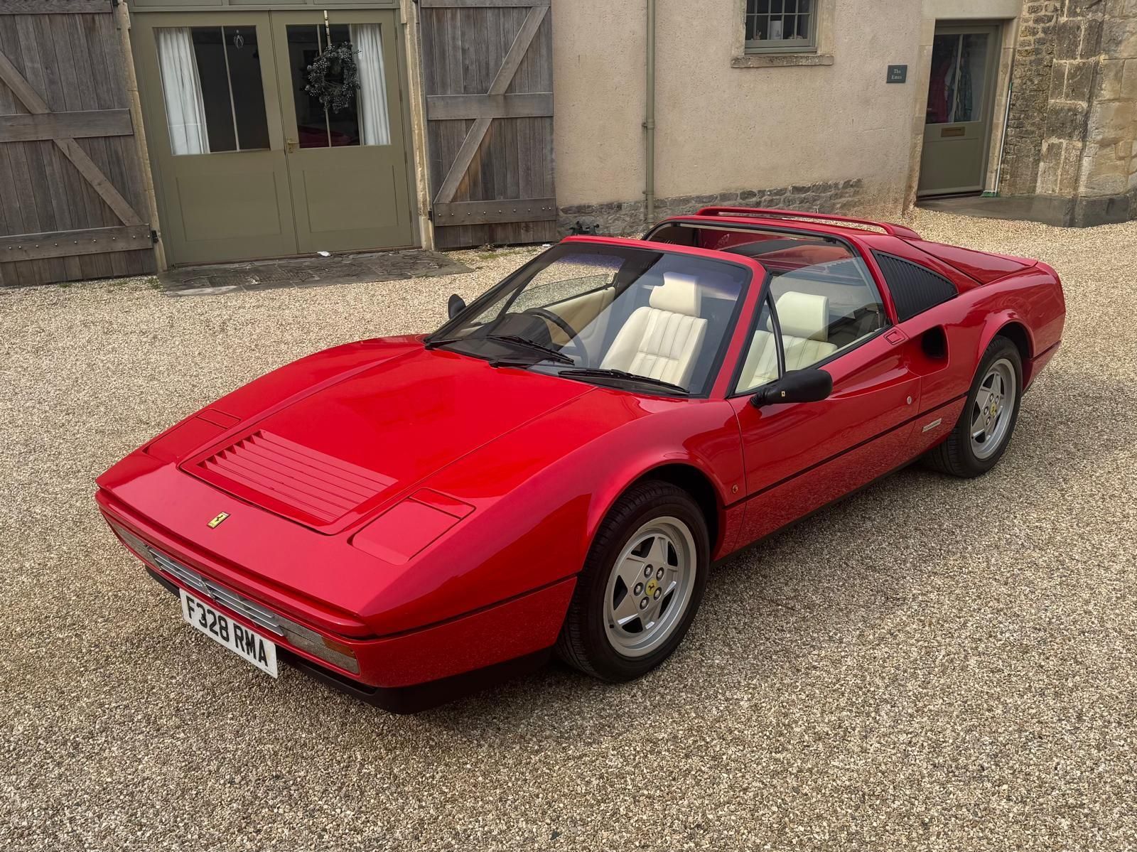 1989F Ferrari 328GTS a Rosso corsa (fer300/9) with Creama leather and black carpets , abs, air conditioning, leather dash board , colour coded rear aero foil.