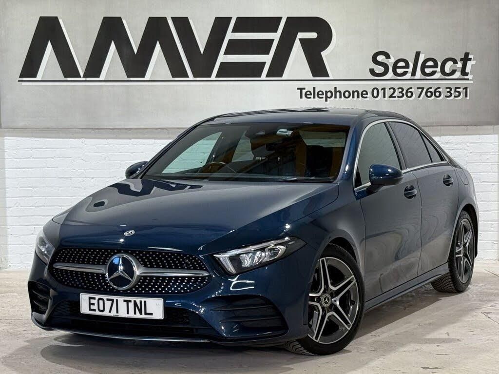 A superb A-Class saloon in Denim Blue metallic trimmed in Black Artico leather with matching Black Dinamica alcantara inserts, Red contrast stitching and Piano Black interior accents. Well equipped 1.3 litre petrol A180 AMG Line automatic model with heated seats, satellite navigation, touchpad controls, reversing camera, DAB radio, Bluetooth, cruise control, a host of driving assistance features including speed limit assist, active lane keep assist, active brake assist and a choice of Sport, Comfort, ECO and Individual driving modes, folding rear seats and more. Very attractive in Denim Blue metallic with dark privacy glass, AMG body styling and 18 inch AMG alloy wheels. 44,000 miles with three owners from new and good service history recorded on the Mercedes digital system, supplied with complete book pack in Mercedes wallet, two keys and six months Momentum Plan 3 Pro warranty so that you can drive away with total confidence knowing that you are benefiting from what is probably the best warranty cover available in the UK today. Amver Select are proud to have been awarded Auto Trader's Highly Rated status for 2025, an honour that we have received every year since its introduction in 2018. In our current premises for nearly two decades, we are conveniently located between Glasgow and Edinburgh and are open from 10:00am to 6:00pm Monday to Friday. We have committed to AA Cars Standards, basically the AA's Commandments of Gold Standard customer service. All cars are provided with a minimum 6 months MOT, 12 months AA basic breakdown cover and other exclusive AA member benefits. Finance available, subject to approval. Part-exchange welcome.
