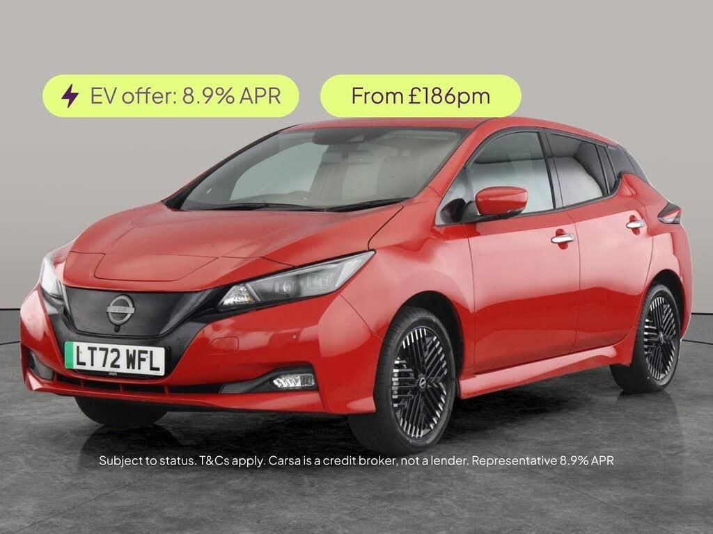 Experience the Nissan Leaf, a stylish red hatchback packed with premium features. Enjoy immersive sound with the BOSE system and upgraded audio, plus seamless journeys with built-in Sat Nav. The Heat Pack keeps you comfortable, while Intelligent Lane Intervention, Blind Spot Assist, and Lane Departure Warning System provide added peace of mind. Drive with ease using cruise control and keyless start. Sitting on smart 17in alloy wheels, this electric Leaf is the ideal blend of innovation and comfort. 3 services recorded, last serviced on 24/11/2025 at 35,588 miles. MOT to 22/09/2026. Visit our website for service history, online valuation, full vehicle specification plus multiple images. This vehicle is VAT qualifying. Any feature/option specified here is from 3rd party data. We cannot guarantee the accuracy of any specification supplied by a 3rd party. We recommend that you physically check the specification of the vehicle on site prior to purchase. This information does not form part of the buying contract. Terms & Conditions apply. We have over 2,000 cars available from our 10 national branches, check our website to see all our stock. Our Trustpilot rating is 4.4/5 with over 9,000 reviews.