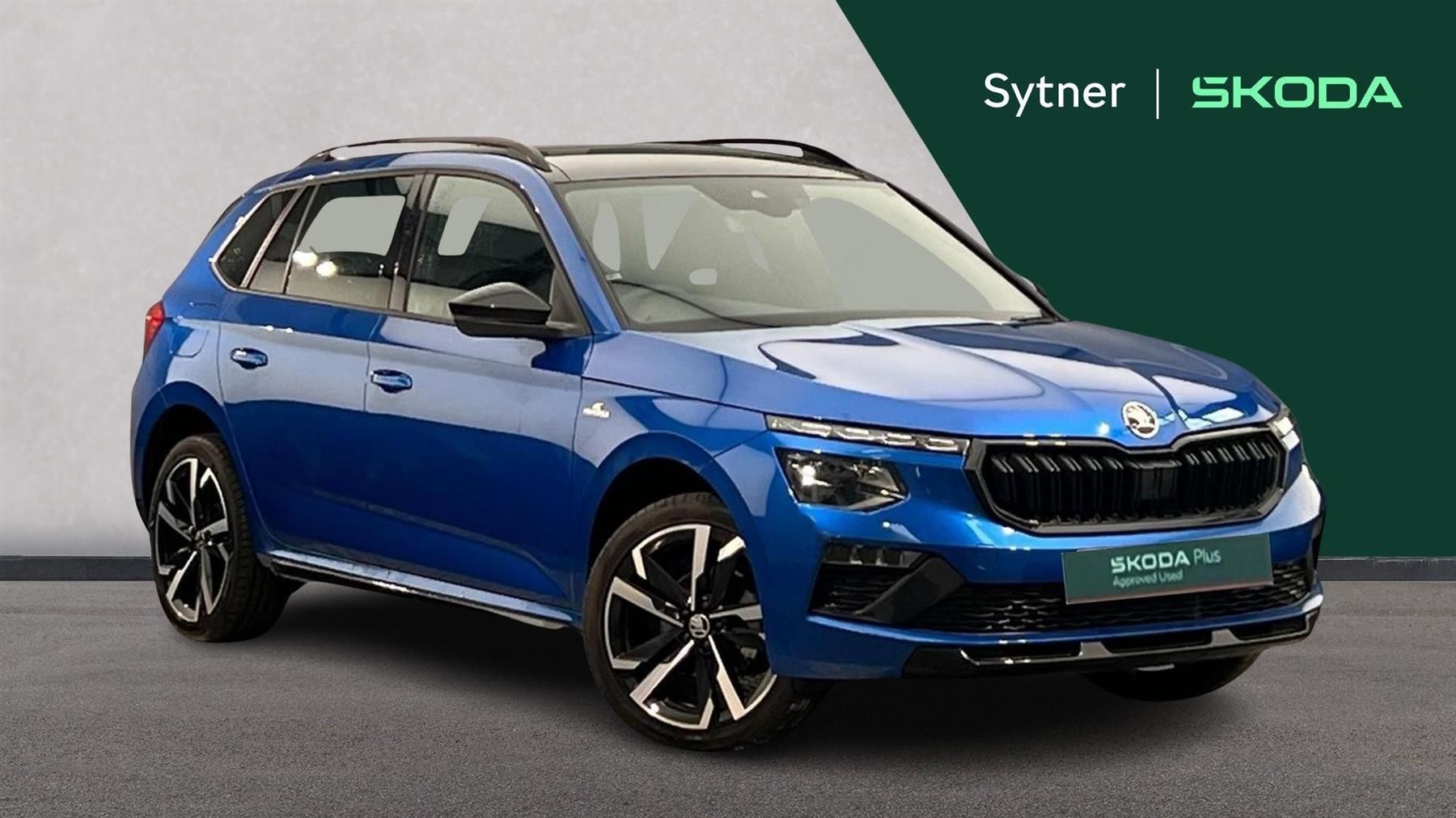 Reserve Online,Bluetooth system,Rear parking sensors,Voice control system,Wireless smartlink,Front assist system,Virtual cockpit with 10.25" display,Speed limiter,9.2" Skoda navigation display,8 speakers,Automatic headlight control with coming home and leaving home feature,Fixed panoramic sunroof with black roof rails,Monte carlo plaque,Sports seats,Light and view plus package - Kamiq,18" Ursa black diamond cut alloy wheels