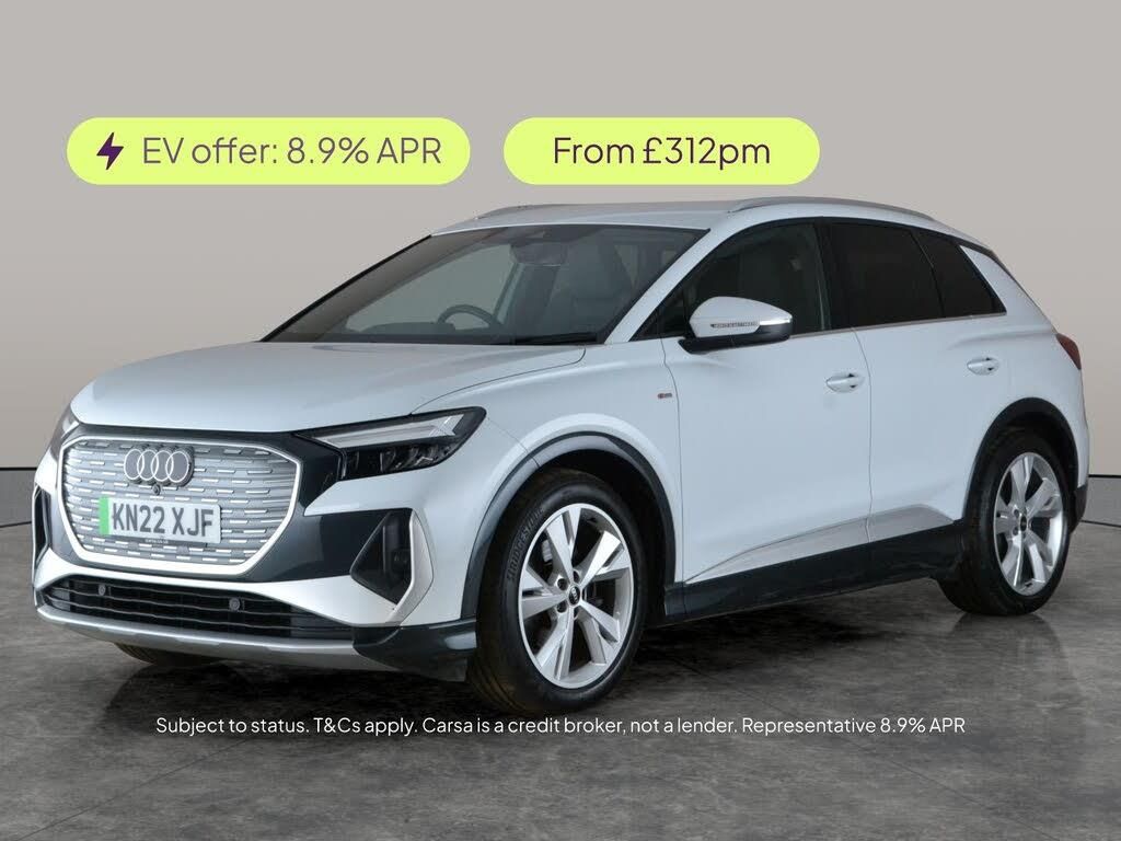Experience modern electric driving with this stylish white Audi Q4 E-tron S line. Standout features include sleek LED headlights, MMI Navigation Plus with Sat Nav, and seamless Apple CarPlay connectivity. Enjoy premium sound, heated S-Line sport front seats, and onboard WiFi for comfort and entertainment on every journey. Lane Departure Warning, digital driver display, and versatile driving modes add safety and convenience, making every drive exceptional. Discover the future of motoring in this impressive electric SUV. 2 services recorded, last serviced on 14/05/2025 at 31,540 miles. MOT to 27/03/2026. Visit our website for service history, online valuation, full vehicle specification plus multiple images. Certain features listed may be available via subscription packages at extra costs, please consult with Audi for details. This vehicle is VAT qualifying. Any feature/option specified here is from 3rd party data. We cannot guarantee the accuracy of any specification supplied by a 3rd party. We recommend that you physically check the specification of the vehicle on site prior to purchase. This information does not form part of the buying contract. Terms & Conditions apply. We have over 2,000 cars available from our 10 national branches, check our website to see all our stock. Our Trustpilot rating is 4.4/5 with over 9,000 reviews.