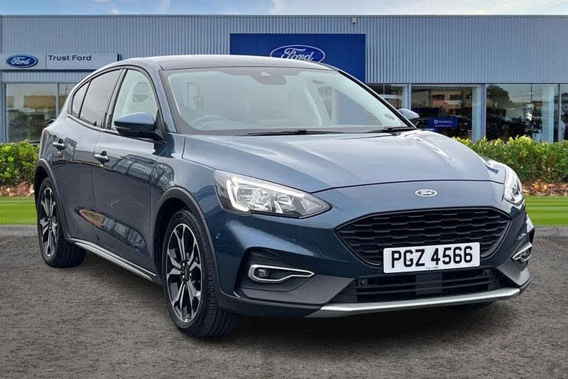 Bluetooth system, Digital clock, Easy fuel capless refuelling system, Eco mode, Ford pass connect, Ford SYNC 3 nav system with DAB radio, 8 colour touch screen, voice control, app link, Apple car play/Android auto and 4.2 TFT coloured cluster, Front and rear parking sensors, Intelligent speed assist, PAS, Rotary gear shift dial, Selectable drive modes with slippery and trail mode, Trip computer, 'Quickclear' heated windscreen/heated washer jets, Active branded scuff plates, Active front and rear bumper with unique upper and lower grille, Auto dimming rear view mirror, Auto headlamps (on/off), Automatic rain sensing wipers, Black painted roof and mirror caps, Body colour power folding door mirrors with puddle lights, Body coloured bumpers, Body coloured door handles, Electrically operated and heated door mirrors with side indicators, Electrically operated front and rear windows with one touch opening and closing, Front variable intermittent wipers with electric wash, Heated rear window, LED daytime running lamp, LED front fog lamps with cornering function, Openable panorama roof, Rear privacy glass, Tailgate wash/wipe, Twin exhaust tailpipes, Unique door and instrument panel inserts, Unique skid plates and side rocker mouldings, 3 spoke leather trimmed steering wheel with integrated audio controls, 6 way power adjustable driver seat, 60/40 split back and cushion rear seats with 2 height adjustable headrests, Centre console with armrest, Driver's seat manual height adjust, Dual zone electronic air temperature control, Front and rear floor mats with blue stitching, Front passenger seat manual height and lumbar adjust, Gear lever gaiter ring with blue stitching, Heated front seats, Height adjustable front headrests, Isofix child seat preparation, Paddle shift controls, Partial leather upholstery with blue stitching, Reach + rake adjustable steering column, Rear centre headrest, Soft console knee pads with blue stitching, ABS+Electronic Brake force Distribution, Auto hold function, Driver airbag, Electronic parking brake, Electronic stability control, Front and rear seatbelt reminder, Front inertia reel height adjustable seatbelts with pre-tensioners, Front passenger airbag, Front side airbags, Hill start assist, Passenger airbag deactivate switch, Post collision braking, Pre collision assist with autonomous emergency braking and pedestrian/cyclist detection, Side curtain airbags, Three rear inertia reel lap/diagonal seatbelts, Tyre pressure monitoring system