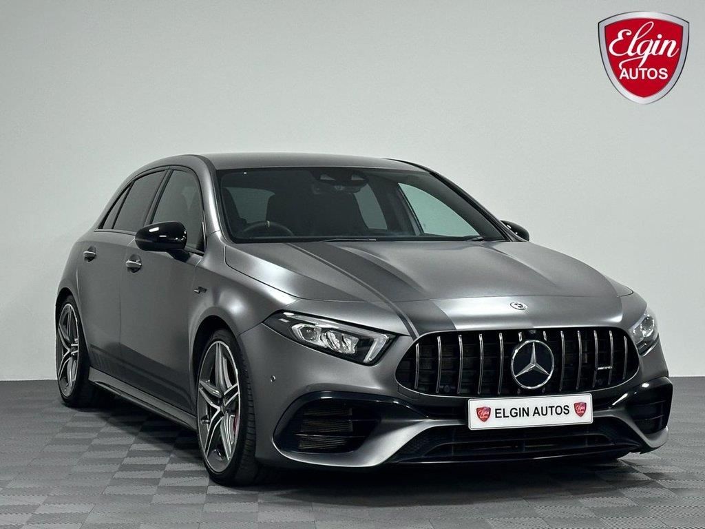 MERCEDES BENZ A45 S 4MATIC+ FINISHED IN DESIGNO MAGNO MOUNTAIN GREY PAINT WITH AMG PERFORMANCE SPORTS SEATS - BLACK WITH CONTRAST YELLOW STITCHING... A VERY RARE EXAMPLE WITH JUST TWO OWNERS FROM NEW AND A MASSIVE SPECIFICATION INCLUDING 19" AMG 5 TWIN SPOKE ALLOYS... AMG NIGHT PACK... AMG SPORTS EXHAUST... AMG DRIVERS PACKAGE... AMG SPORTS SUSPENSION... AMG HIGH PERFORMANCE BRAKE SYSTEM WITH RED CALIPERS... AMG PERFORMANCE HALF LEATHER/SUEDE STEERING WHEEL... HEATED SEATS... NAVIGATION... BURMESTER SURROUND SOUND SYSTEM... REVERSING CAMERA... KEYLESS GO... LED HIGH PERFORMANCE HEADLIGHTS... AMG DECALS... APPLE CARPLAY WITH WIRELESS CHARGING... 6 MONTHS NATIONWIDE WARRANTY & BREAKDOWN COVER, YOUTUBE VIDEO, FINANCE AVAILABLE, PART EXCHANGE WELCOME, DELIVERY AVAILABLE. Mountain Grey,Artico Leather-Dinamica Microfibre - Black with Contrast Topstitching and Yellow Stripes,10.25in Media Display,19in Alloy Wheels - AMG 5 Twin Spoke Design,ABS - Anti-Lock Braking System with BAS - Brake Assist,AMG A 45 S Bodystyling,AMG Bodystyling - Front and Rear Apron,AMG Centre Console - Decidedly Sporty with Raised Front Section,AMG Drive Unit including AMG Dynamic Select Controller,AMG Drivers Package with Top Speed of 170mph,AMG Dynamic Select with a Choice of Driving Modes,AMG High-Performance Braking System with Red Brake Calipers and Black AMG Lettering at the Front,AMG Instrument Cluster with Colour Display and AMG Menu,AMG Night Package,AMG Performance 4MATIC Plus with Torque Control,AMG Performance Seat Package,AMG Speed-Sensitive Steering with Two Sets of Steering Characteristics,AMG Sports Pedals in Brushed Stainless Steel with Rubber Studs,AMG Sports Suspension,AMG Track Pace - Records Lap Times on the Racetrack,ATTENTION Assist,Active Bonnet - Pedestrian Safety Measure which Det