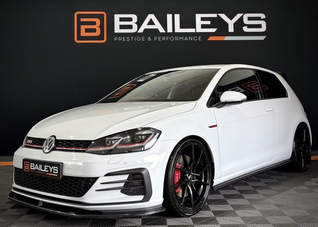 Black interior.FOR SALE 2019 Volkswagen Golf 2.0 TSI GTI Performance Hatchback 3dr Petrol Manual Euro 6, Curently running stage one software making 333BHP, Stunning example - Priced at £17,795 56,835 Miles Backed By DVSA MOT Expiry - 08/12/2026 Great Service History, Stunning Example, Fully HPI clear Just arrived here at Baileys Prestige & Performance is this beautiful Volkswagen Golf GTI finished in White. A fantastic choice for those seeking style and performance, Paired with its smooth manual gearbox this car is an extremely engaging drive! This 2019 model is in great condition for its age, This car really does drive and look incredible! We are sure this car will not hang around for long. The exterior bodywork is in amazing condition and has clearly been well looked after, truely superb condition both inside and out. A genuinely great example that drives perfectly and stands out from the crowd. Don't miss out on the opportunity to own this stunning car with its impressive features and affordable price of £17,795! This car also comes with Great service history, Please see full history detailed below. We have just carried out a Oil service & health check ready for the new owner to enjoy for years to come. All in all a great example. Full Spec & modifications below FULL SPEC - 19 Gloss Black Bola B12 Alloy Wheels - Full TRC low line Kit which includes Front Splitter & Side skirt extensions - Stage one tuned making 333BHP - Roof Spoiler and Extension - Climate Control - Heated Seats - ACC - Adaptive Cruise Control - Reverse Camera - Lane assist - Xenon Headlights with DRLs - Media Centre - DAB - Tinted Windows Absolutely great example which has been priced fairly at £17,795 Contact us for further information or to book a viewing/test drive. Finance and extended warranties available ** Here at Baileys Prestige & Performance we go the extra mile to make sure you are getting the best service out there, whilst our cars undergo a full health check and are driven and tested, all essential work carried out with no expense spared, P/x Warranty available**