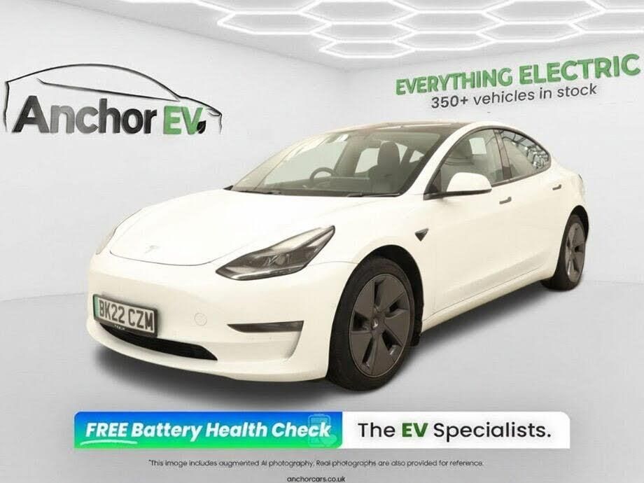 Buying a Pre-Owned Tesla from Anchor EV is a seamless experience. Every Tesla we offer is carefully selected to meet high quality standards, delivering the performance, technology and driving experience Tesla is known for. This Dual Motor Long Range Saloon is finished in Pearl White Multi-Coat paint and features a front to back pan roof alongside the premium interior. Each vehicle is prepared to provide a premium ownership experience, including an independent battery state of health check. This vehicle comes with a valid MOT until January 2027. All vehicles undergo a comprehensive inspection and preparation process carried out by trained technicians, including detailed checks across mechanical condition, battery health, interior and exterior finish, tyres, braking systems, onboard technology and control systems. Each vehicle is also verified to ensure no history of structural damage or airbag deployment. Over the last 2 years we have won multiple industry awards, including being named the MotorTrader Used Van Dealer of the Year 2025 and the MotorTrader UK Car Dealership of the Year. We are also proud recipients of the Rising Star Award, MotorTrader LCV Dealer of the Year, and the Digital Initiative of the Year. Further accolades include the MotorTrader Commercial Dealer Website of the Year, SME UK Enterprise Awards Best Pre-Owned Van Retailer, and the 2024 MotorTrader Independent Van Dealer of the Year. We also maintain an industry-leading Trustpilot score of 5/5 stars, excellent. Your Tesla will benefit from warranty protection for added confidence when buying our Anchor EV Care Pack. We offer extended guarantees with our Remote, Premium, or Platinum Care Packs, and our EV trained sales team can walk you through these options. All vehicles are supplied with a complimentary 12-month AA Breakdown Cover as part of the AA dealer promise. Every Tesla delivers cutting-edge electric performance alongside intelligent driver assistance features. A 30-day Premium Connectivity trial is included once your mobile app recognises you are the new owner. To find out more or to arrange a viewing, please phone us on 0118 443 3024 or visit us at Anchor Business Park, Bath Rd, Reading RG7 5JF. The Tesla Model 3 combines instant acceleration with a refined, quiet driving experience. This Long Range All-Wheel Drive variant delivers a balance of efficiency, range and power. With access to Teslas charging network, over-the-air software updates and a minimalist, technology-focused interior, all Tesla products offer a modern and advanced, industry-shattering approach to driving. Long range for a change!