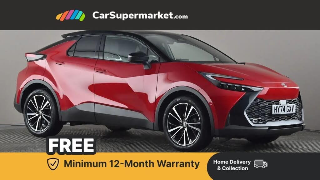 Parking Sensors, Blind Spot Monitoring, Bluetooth, Sat Nav, Rear View Camera, Adaptive Cruise Control, Cruise Control, Lane Departure Warning, Apple CarPlay, Privacy Glass;This Toyota C-HR Hybrid Excel is finished in red with a black roof and offers a stylish and efficient driving experience. It includes parking sensors, blind spot monitoring, Bluetooth connectivity, satellite navigation, a rear view camera, adaptive cruise control, cruise control, lane departure warning, Apple CarPlay and privacy glass, delivering both comfort and advanced safety features. Supplied with a minimum 12-month warranty. Last serviced on 27/11/2025.