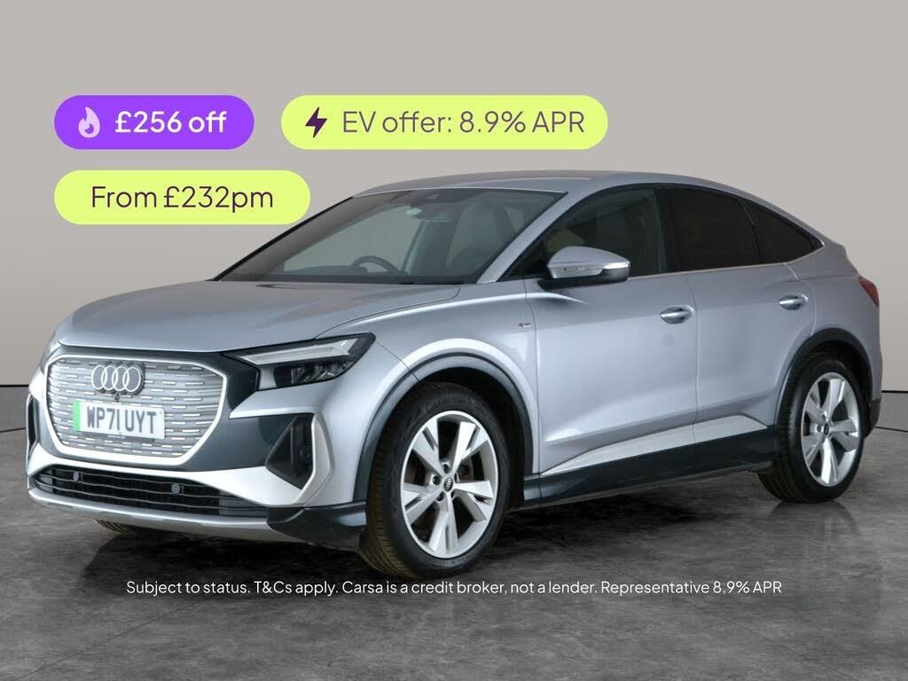 Experience the future with this striking silver Audi Q4 E-tron Sportback, featuring the sought-after Technology and Comfort & Sound packages. Enjoy seamless journeys with a head-up display, MMI Navigation Plus, and a premium upgraded sound system. Stay comfortable with heated S-Line sport seats and stay focused with adaptive cruise control and lane departure warning. Effortlessly connect your device via Apple CarPlay or Bluetooth audio streaming, and reverse with confidence using the crystal-clear camera. Cutting-edge LED headlights complete the premium package. 2 services recorded, last serviced on 07/01/2026 at 83,922 miles. MOT to 20/01/2027. Visit our website for service history, online valuation, full vehicle specification plus multiple images. Certain features listed may be available via subscription packages at extra costs, please consult with Audi for details. This vehicle is VAT qualifying. Any feature/option specified here is from 3rd party data. We cannot guarantee the accuracy of any specification supplied by a 3rd party. We recommend that you physically check the specification of the vehicle on site prior to purchase. This information does not form part of the buying contract. Terms & Conditions apply. We have over 2,000 cars available from our 10 national branches, check our website to see all our stock. Our Trustpilot rating is 4.4/5 with over 9,000 reviews.