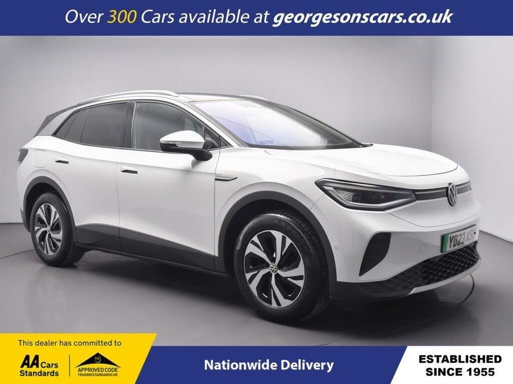 The Volkswagen ID.4 Pure 52kWh Style Edition combines an efficient electric motor with 170hp, delivering 0-62mph in 8.5 seconds and up to 223 miles WLTP range in this rear-wheel-drive setup with a smooth single-speed automatic transmission. The Style Edition trim offers premium comfort with a spacious, modern interior for versatile family EV motoring. With one owner, this ID.4 is in excellent condition. Enjoy the airy cabin with the panoramic roof, while integrated satellite navigation, Apple CarPlay, Bluetooth and DAB radio ensure seamless connectivity on every journey. Parking is a breeze thanks to the reverse camera and parking sensors, providing clear visibility and confidence in tight spaces. Stay comfortable with dual-zone climate control, heated front seats, heated windscreen and heated steering wheel, offering all-season luxury. Adaptive cruise control with speed limiter and lane assist enhance safety and relaxation on highways. The spacious five-door SUV design includes a 543-litre boot for practicality. Georgesons Cars, one of the leading used car dealerships near me, has been serving Liverpool and the wider Merseyside area since 1955. As a third-generation family-run business, we offer a wide variety of cars for sale, including over 300 quality used cars in Liverpool. Whether you're searching for cars for sale in Liverpool or reliable auto used cars, our inventory is price-checked daily, ensuring competitive pricing. Rated 5-stars on TrustPilot, Georgesons Cars proudly upholds the AA dealer promise and Chartered Trading Standards approval. Contact us today to explore our full range of cars for sale and let our team help you find your next car!