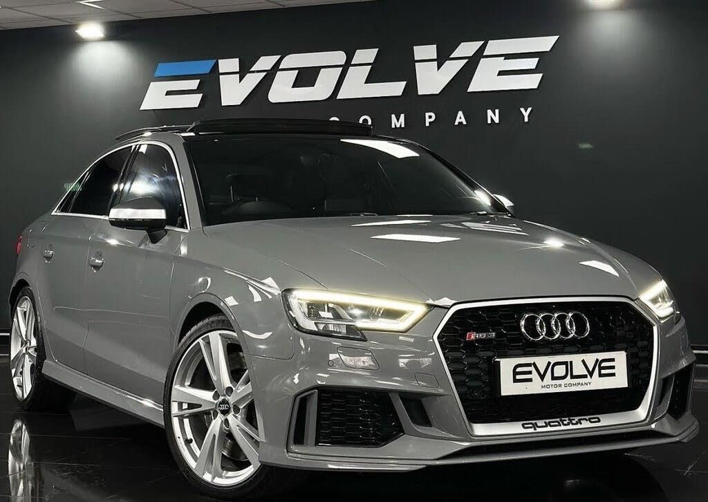 Our Audi RS3 Saloon Finished In Nardo Grey With 65,500 Miles, Full Service History Optional Specification Includes: Panoramic glass sunroof Comfort and Sound Pack Privacy glass Door mirrors (folding with auto-dimming function) Nardo grey, solid Optic 3D design, titanium grey RS emblem on steering wheel Parking Sensors, Audi Sport Alloys, Automatic Matrix LED Headlights, RS Sports Exhaust, Half Alcantara Multifunctional Steering Wheel,