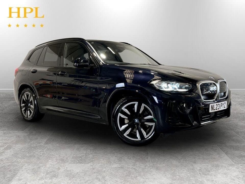 19in Alloy Wheels - Aerodynamic - Jet Black with Bi-Colour Inserts, ABS - Anti Lock Braking System, Active Guard Plus, Active Protection, Adaptive LED Headlights, Adaptive Suspension, Air Breather with BMW M logo, Air Conditioning - Automatic, Airbags - Driver and Front Passenger, Airbags - Front Side for Driver and Passenger, Airbags - Head - Front and Rear, Alarm System, Ambient Lighting, Armrests, Attentiveness Assistant, Automatic Operation of Tailgate, Automatic Start-Stop Button, Backrest Width Adjustment for Driver, Blue Ring Around BMW Logos, BMW Connected Package Professional, BMW ConnectedDrive Online Services, BMW iDrive, BMW Legal Emergency Call, BMW Live Cockpit Professional, BMW TeleServices, Brake Pad Wear Indicator, Bumper System Front and Rear - Replaceable Deformation Elements for Impacts Up to 15kmh, Carbon Black, CBC - Cornering Brake Control, Centre Lock Switch, Charging Cable - Mode 3 - 5m, Closing System with Central Locking, Condition Based Service, Crash Sensor, Cup Holders - Front x2, DAB Digital Radio, Door Sill Strips, Driving Assistant Professional, Driving Experience Switch, DSC - Dynamic Stability Control Plus, DTC - Dynamic Traction Control, Dynamic Brake Lights, eDrive Exterior Sound, Electric Memory Seats, Electric Windows - Front, Electro Mechanical Parking Brake, Electronic Vehicle Immobiliser, Enhanced Bluetooth with Wireless Charging, Extended Storage, Exterior Mirrors - Electrically Folding with Anti Dazzle, Exterior Trim - High-Gloss Shadowline, Flexible Charger, Floor Mats - Velour, Follow Me Home Headlight Function, Front and Rear Parking Sensors, Front Bumper - M Sport with iX3 Specific Design with Blue Contents, Galvanic Embellisher for Controls, Glove Compartment - Lockable, Headlights - Beam Throw Control, Headlining - M Anthracite, Heated Seats for Driver and Front Passenger, Heated Steering Wheel, High-Beam Assistant, Instrument Panel in Sensatec, Interior Rear-View Mirror with Automatic Anti-Dazzle Function, Interior Trim - High-Gloss Black with Pearl Chrome, Lashing Eyes in Luggage Compartment, Luggage Compartment Lights, Luggage Net, M Aerodynamic Exterior, M Badging on Front Side - Left and Right, M Sport Leather Steering Wheel, M Sport Package, Model Specific Design Elements, Multiple-Control-Arm Rear Axle, Non Smoker Package, Panoramic Glass Sunroof, Parking Assistant, Power Sockets, Power Steering - Electric, Preparation for Adaptive M Suspension, Rain Sensor with Automatic Headlight Activation, Rear Centre Armrest including Two Cupholders, Rear Diffuser in Blue, Reversing Assist Camera, Reversing Light, Roof Rails - Shadow Line High Gloss - Black, Runflat Indicator, Safety Battery - Terminal Clamp, Seat Backrest Adjustment for Rear Seats, Seats - Front Sports, Servotronic Steering, Side Impact Protection, Split Folding Rear Seat, Steering Column Adjustment, Stereo Speaker System, Storage Options, Sun Protection Glass, Sun Visors with Vanity Mirrors and Ticket Holder, Third Brake Light Using LED Technology, TPMS - Tyre Pressure Monitoring System, Tyre Repair Kit, Vernasca Leather - Black with Blue Contrast Stitching, Warning Triangle, Washer Jets - Heated, Welcome Lighting, Widescreen Display, WiFi Hotspot