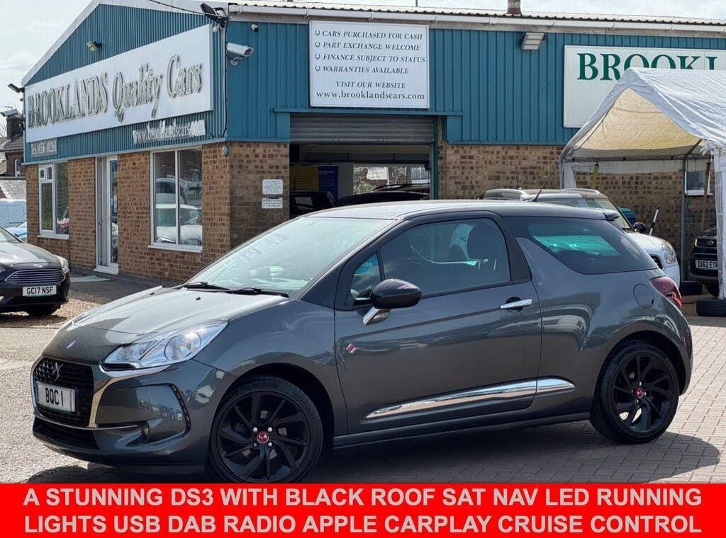 12 Volt Socket in Cabin, 17in Alloy Wheels - Aphrodite Gloss Black, 3D LED Rear Lights, 7in Touchscreen, ABS - Anti-lock Braking System with Electronic Brakeforce Distribution and Emergency Braking Assistance, Alarm, Aluminium Sports Pedals, Automatic Air Conditioning, Black Panel On-Off Instrument Lighting, Bluetooth Handsfree and Media Streaming with 1A USB Socket, Boot Lighting, Chrome Door Handles, Chrome DS Wings Grille, Chrome Front Fog Light Surrounds, Chrome Rear Bumper Insert, Chrome Side Rubbing Strips, Coloured Plip Key Insert, Compressor with Puncture Repair Kit, Cruise Control with Speed Limiter, DAB Digital Radio, Dark Tinted Rear Windows, Driver-Front Passenger-Front Lateral and Curtain Airbags, Drivers and Passengers Sunvisor with Courtesy Mirror, Drivers Unfastened Seat Belt Warning, DS Connect Box Emergency and Assistance System, DS Performance Coloured Stitching, DS Performance Stripe Graphics, Electrically Adjustable Door Mirrors, eMyWay Satellite Navigation, ESC - Electronic Stability Control, Exterior Temperature Display, Five 3-Point Inertia Reel Seat Belts, Front Armrest, Front Courtesy and Reading Lights, Front Door Pockets with Bottle Holder, Front Electric Windows, Front Seat Back Pockets, Front Seat Belt Pretensioners, GEI - Gear Efficiency Indicator, Gloss Black Centre Console and Interior Door Handle Surrounds, Gloss Black Kit - Gloss Black Dashboard Strip, Height and Reach Adjustable Steering Wheel, Height-Adjustable Drivers Seat, Height-Adjustable Front Passenger Seat, Height-Adjustable Halogen Headlights, Hill Start Assist, Immobiliser, Integrated Air Freshener, Interior Mood Lighting, Lashing Eyes in the Boot, Leather Gear Knob, Leather Handbrake with Chrome Insert, Leather Instrument Binnacle, LED Daytime Running Lights, LED Front Fog Lights, Locking Wheel Bolts, Mirror Screen with Mirror Link and Car Play, Multi-Function On-Board Trip Computer, Perforated Leather Sports Steering Wheel, Performance Line Badging, Performance Line Carpet Mats, Premium Carpet Mats, RDS Radio with 6 Speakers and AUX Socket, Rear Parking Sensors, Rear Split-Folding Seats, Rear Spoiler, Remote Central Control Locking with Deadlocks, Rev Counter, Roof Colour Painted Door Mirrors, Satin Chrome Door Sill Protectors, Satin Chrome Gear Surround, Satin Chrome Steering Wheel Inserts, Shark Grey with Black Roof, Single Chrome Exhaust Tailpipe, Soft-Touch Upper Dashboard, Sport Suspension, Sports Seats, Steering Wheel Mounted Controls, Two Rear ISOFIX Mounting Points, Tyre Pressure Monitor, Variable-Assistance Power Steering