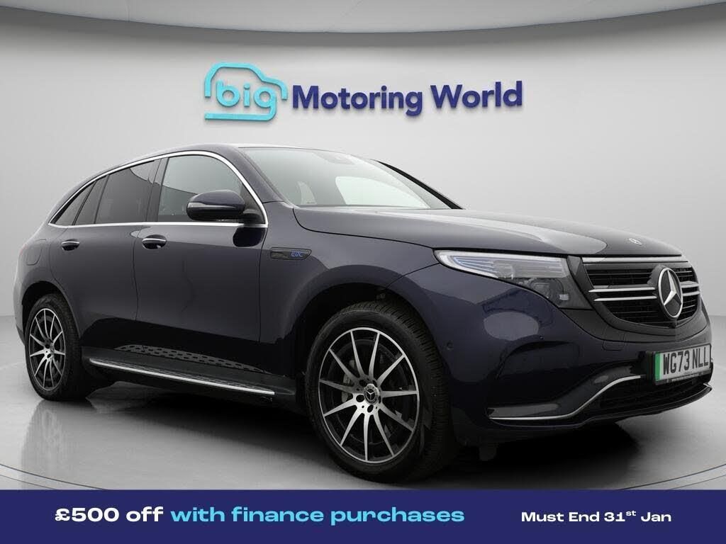 £500 towards your finance depo-Our Mercedes-Benz EQC comes with optional extras worth £1,014. Specification includes a range of fantastic features including £500 towards your finance deposit, Comfort Pack, All Wheel Drive, 20'' Alloy Wheels, Leather Seats, Air Suspension, AMG body styling, Parking Pack, Running Boards, Satellite Navigation Specification information is supplied by CAPHPI and may vary to the actual car. This data does not form any part of a buying contact. Please check specification prior to purchase in-store. The MOT is valid until November 2026, visit bigmotoringworld.co.uk for more photos, a 360 tour, service history and a free HPI report.Were BIG on peace of mind and this Blue Mercedes-Benz EQC has completed our comprehensive 200 point inspection and passed all checks. Its ready for you to drive away with immediate collection in-store. We include a 90-day warranty as standard plus an option to extend for up to 3 years.Reserve this car exclusively for you, safely and securely at bigmotoringworld.co.uk, with a fully refundable £99 deposit. Test drive before you buy, with no commitment, no hassle and a completely haggle free experience. Still searching and want to see thousands more cars? We are BIG on choice with over 8000 cars to choose from.Visit our award winning web site bigmotoringworld.co.uk.Were Big Motoring World and were BIG on what matters to you.