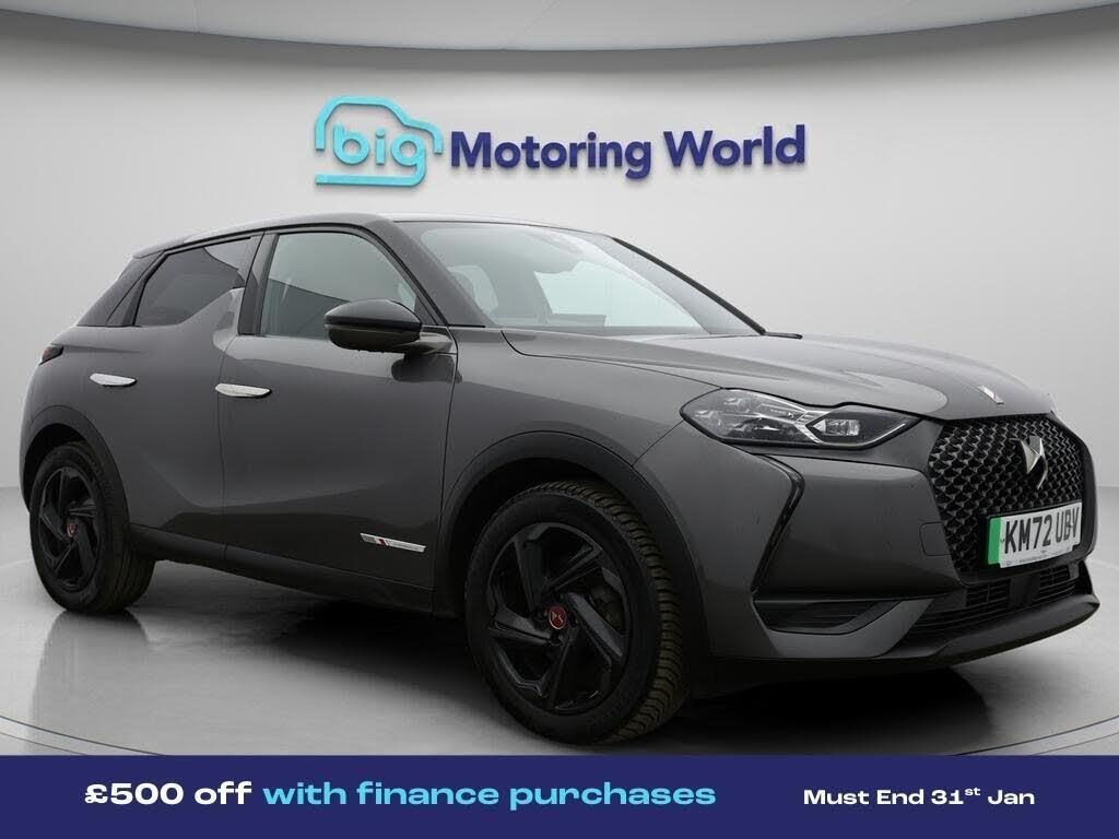 £500 towards your finance depo-Our DS AUTOMOBILES DS 3 CROSSBACK comes with optional extras worth £4,800. Specification includes a range of fantastic features including £500 towards your finance deposit, 18'' alloy wheels, Apple CarPlay, Privacy Glass, Bluetooth, Parking Sensors, Cruise Control, Climate Control, DAB Radio , Touch Screen Control Specification information is supplied by CAPHPI and may vary to the actual car. This data does not form any part of a buying contact. Please check specification prior to purchase in-store. The MOT is valid until November 2026, visit bigmotoringworld.co.uk for more photos, a 360 tour, service history and a free HPI report.Were BIG on peace of mind and this Grey DS AUTOMOBILES DS 3 CROSSBACK has completed our comprehensive 200 point inspection and passed all checks. Its ready for you to drive away with immediate collection in-store. We include a 90-day warranty as standard plus an option to extend for up to 3 years.Reserve this car exclusively for you, safely and securely at bigmotoringworld.co.uk, with a fully refundable £99 deposit. Test drive before you buy, with no commitment, no hassle and a completely haggle free experience. Still searching and want to see thousands more cars? We are BIG on choice with over 8000 cars to choose from.Visit our award winning web site bigmotoringworld.co.uk.Were Big Motoring World and were BIG on what matters to you.