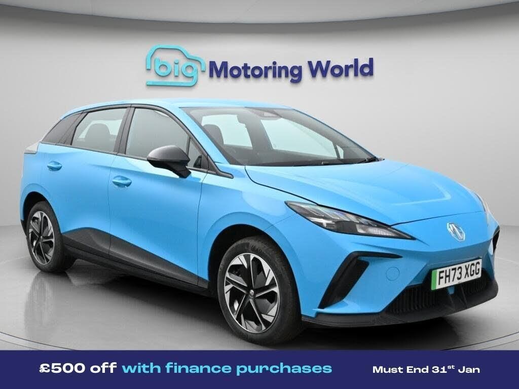 £500 towards your finance depo-Our MG MG4 is finished in Blue. Specification includes a range of fantastic features including £500 towards your finance deposit, 17'' Alloy Wheels, Apple CarPlay, Adaptive Cruise Control, Lane Assist, Android Auto, Bluetooth, Parking Sensors, 2 Zone Climate, Cruise Control Specification information is supplied by CAPHPI and may vary to the actual car. This data does not form any part of a buying contact. Please check specification prior to purchase in-store. The MOT is valid until February 2027, visit bigmotoringworld.co.uk for more photos, a 360 tour, service history and a free HPI report.Were BIG on peace of mind and this Blue MG MG4 has completed our comprehensive 200 point inspection and passed all checks. Its ready for you to drive away with immediate collection in-store. We include a 90-day warranty as standard plus an option to extend for up to 3 years.Reserve this car exclusively for you, safely and securely at bigmotoringworld.co.uk, with a fully refundable £99 deposit. Test drive before you buy, with no commitment, no hassle and a completely haggle free experience. Still searching and want to see thousands more cars? We are BIG on choice with over 8000 cars to choose from.Visit our award winning web site bigmotoringworld.co.uk.Were Big Motoring World and were BIG on what matters to you.