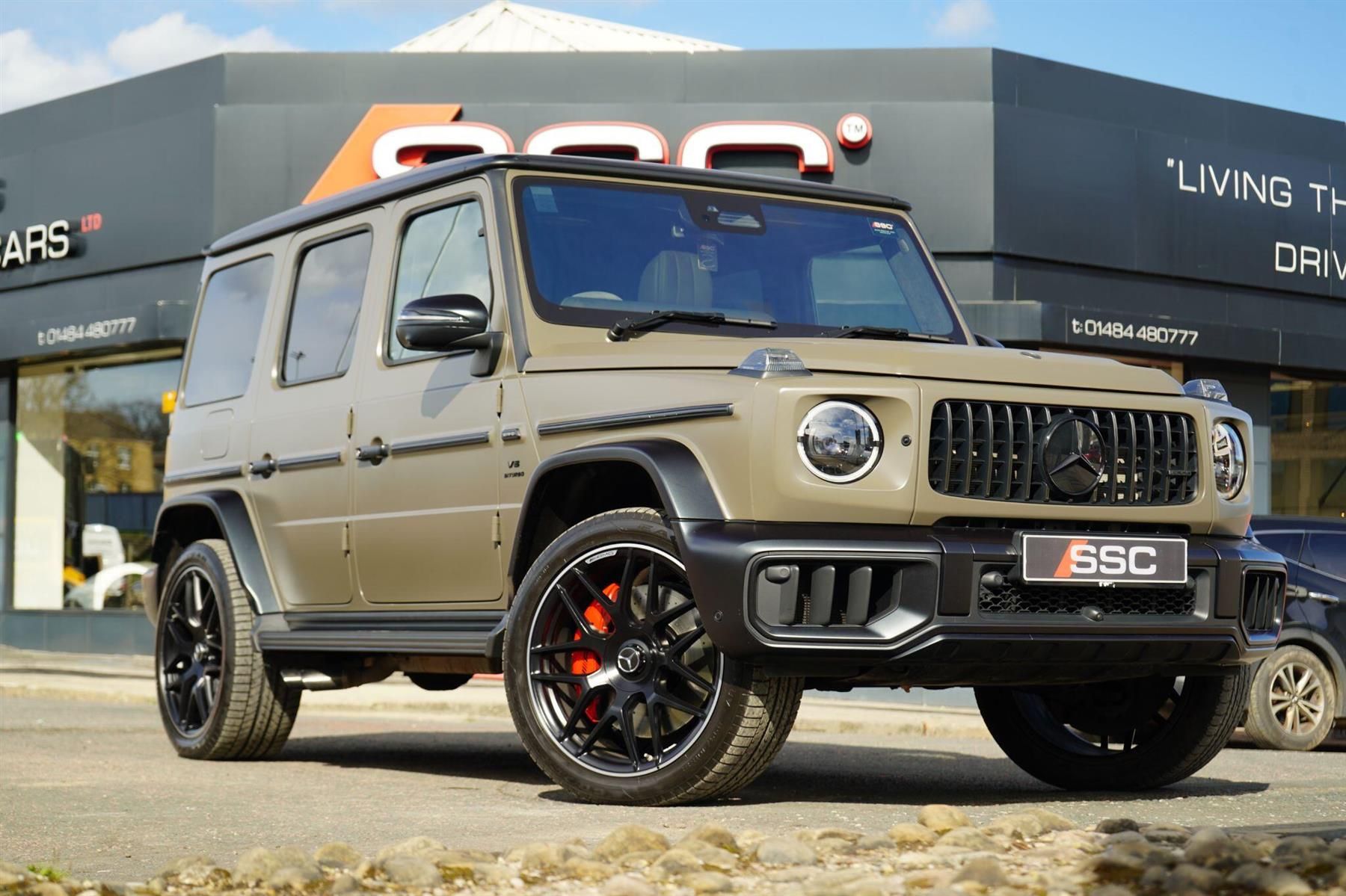 Stunning G63 Finished In Olive Green Magno Exclusive With Manufaktur Diamond Quilted Leather. Fantastic Spec Inc: Extended AMG Night Pack Magno, Heated AMG Performance Steering Wheel, AMG Night Pack, 22'' Cross Spoke AMG Alloys, Active Multicontour Seat Package Plus, Blind Spot Assist, Electric Sunroof, Burmester 3D Surround Sound, 360 Camera, Active Steering Assist, Lane Keeping Assist, AMG Track Pace, Dash Cam, Multibeam LED Headlights, Temperature Controlled Cup Holder, Wireless Charging, DISTRONIC Radar Cruise Control, Red AMG Calipers, Warmth Comfort Pack, Comfort Pack, Assistance Pack, Parking Pack, Offroad Cockpit, Ambient Lighting. This G63 Comes With Remainder Of Manufacturers Warranty. VAT QUALIFYING