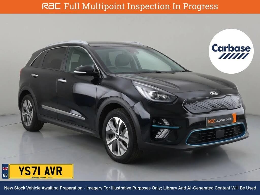 Touchscreen, Android Auto, Apple CarPlay, Blind Spot Detection, Tyre Pressure Monitoring System;1 Owner From New With Service History - Last At 28k And RAC Multi-Point Inspection at 28k Miles The Kia E-Niro Has The Capability To Make Electric Driving More Comfortable Than Ever - This Kia Niro Is A Fully Electric Vehicle That Can Utilize Ultra Rapid Charge Technology At A Impressive Rate Of 100 Kw By Using A CCS Connector Which Enables You To Charge From 10% To 80% In As Little As 45 Minutes. All This Together Gives A Exceptional Range Of 282 Miles. The Niro Showcases A Strong 201 Horsepower And An Instant Torque Of 395 Newton-Meters From Its Electric Motor, Launching 0 To 60 Mph In Just 7.5 Seconds. - Finished In £595 Midnight Black Metallic Paint Standout Key Features Include Gps Satellite Navigation System, Boasting Intuitive Sat Nav Functionality For Seamless Journeys, Stunning Cinematic Vista Of The Skies Glass Panoramic Sunroof, Rear Assist Camera. As You Step Inside You'll Discover An Impressive Array Of Technology, Including Apple CarPlay, Android Auto, Wireless Charging Pad For Compatible SmartPhones, Rear Radar Type Parking Sensors, Rain Sensing Windscreen Wipers, Lane Departure Warning System, Radar Guided Adaptive Cruise Control. Keep Everyone Onboard Entertained Thanks To Features Such As Voice Control For Media Functions, Bluetooth Wireless SmartPhone Connectivity, DAB Digital Radio For A Myriad Of Stations To Suit Your Mood, CD Player With MP3 Compatibility. Relax In The Ultimate Comfort Thanks To Keyless Entry, Keyless Start, Air Conditioning, Electrica...