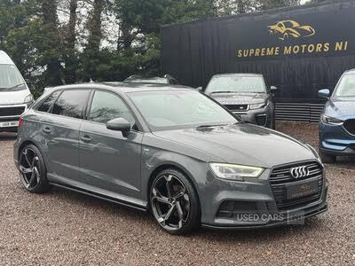 Audi connect, Audi drive select, Audi smartphone interface, Colour driver's information system display, Electro-mechanical PAS, HDD satellite navigation system radio single CD/DVD player MMI control system, Mobile telephone preparation - bluetooth interface, Service interval indicator, Speed limit display, Voice control system, 2 USB ports, Audi music interface, Auxiliary input socket, CD player, DAB Digital radio, MMI radio plus with 7" colour MMI screen and MMI controller, Aluminium window trim, Auto dimming rear view mirror with light and rain sensors, Body colour bumpers, Body colour door mirrors with integral indicators, Body colour roof spoiler, Chrome exhaust tailpipes, Electric front windows, Electric operated/heated door mirrors, Electric rear windows, Heated windscreen washer jets, LED daytime running lights, Matt black radiator grille, Rear wiper, S Line body styling, Sport specific side air inlet grille and diffuser insert, 3 adjustable rear headrests, 3 spoke flat bottomed multi-function leather steering wheel, 4 lashing points to secure luggage, Adjustable front armrest, Black cloth headlining, Dual zone electronic climate control, Front and rear interior lights with delay, Front passenger seat isofix location point, Front sports seats, Front/rear floor mats, Height/depth adjustable steering column, Illuminated glovebox, ISOFIX child seat preparation+airbag deactivation, Jack and tool kit, Stainless steel pedals, Steering wheel gearshift paddles, Storage compartment in centre console, Storage compartment under front seats, Storage compartments in doors, LED interior light pack - A3/RS3, Non smoking pack - A3, Storage and luggage pack - A3/RS3, 3 point seatbelts on all seats, ABS/EBD, Active bonnet, Active front headrests, ASR, Curtain airbags, Driver and passenger side airbags, Driver/Front Passenger airbags, Drivers knee airbag, EDL, Electromechanical parking brake, ESC - Electronic Stability Control + traction control, Front passenger airbag deactivation, Manual rear child locks, Multi-Collision braking, Seatbelt warning, Tyre pressure warning, Warning triangle and first aid kit, Anti theft alarm, Anti-theft wheel bolts, Remote control central locking, Thatcham category 1 alarm + immobiliser, Diesel particulate filter, Aluminium air vent surrounds, Aluminium trim elements, Matt brushed aluminium inlays, Space saver spare wheel