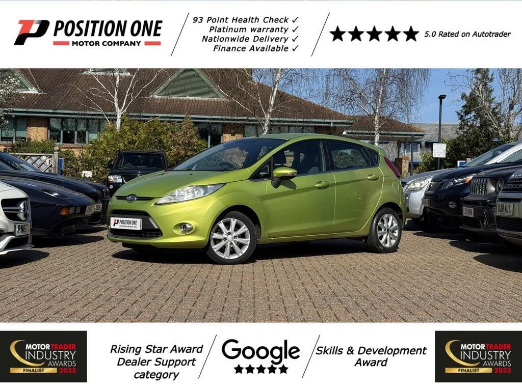 Grey interior.All vehicles go through an extensive health check with a main dealer or specialist and nationwide delivery is available. Ford Fiesta 1.25 Zetec finished in Squeeze Green with 115,041 miles and just two previous owners. A well maintained example with an excellent service history carried out in 2010, 2012, 2015, 2017, 2020, 2021, 2022, 2024 and 2026, along with a long MOT. Drives very well with a smooth manual gearbox and responsive petrol engine, making it ideal for both city driving and longer journeys. Specification includes 16 inch alloy wheels, metallic paint, ESP with traction assist and emergency brake assist, curtain airbags and a clean interior with black Fabric Fairland upholstery. A practical and stylish hatchback with seating for five and strong everyday usability. Finance available and extended Platinum warranties available. Contact Position One Motor Company to arrange a viewing.