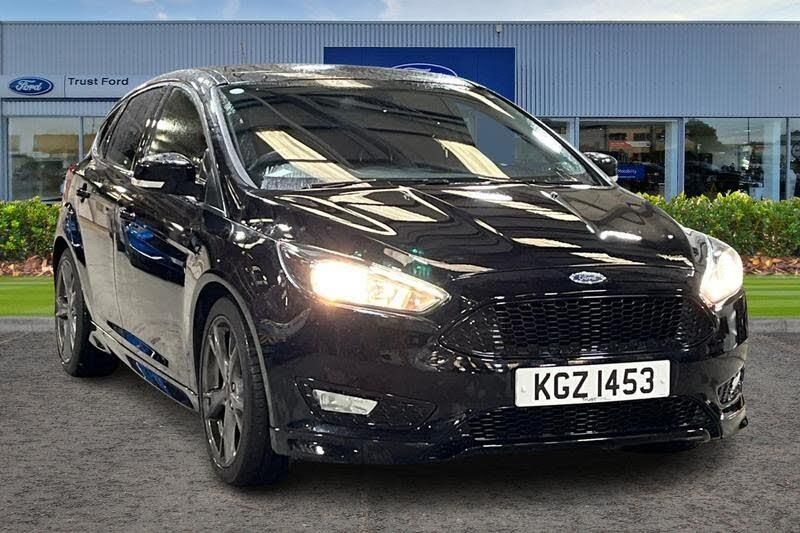 Cruise control + speed limiter, Digital clock, Easy fuel capless refuelling system, Eco mode, Electric boot release, PAS, SYNC 3 nav system with DAB radio/CD, 8 colour touch screen, bluetooth, emergency assistance, advanced voice control and 6 speakers, TFT cluster screen, Trip computer, 'Quickclear' heated windscreen/heated washer jets, Auto dimming rear view mirror, Automatic headlights, Automatic rain sensing wipers, Black honeycomb front grille, Body colour bumpers, Body colour door handles, Body colour door mirrors, Body colour rear spoiler, Body colour side skirt, Body styling kit, Chrome finish on upper door line, Electric adjustable heated door mirrors, Electric front and rear windows + one touch + global open/closing, Front fog lights, Front variable intermittent wipers with electric wash, Heated rear window, LED daytime running lights, Rear LED lights, Rear privacy glass, Tailgate wash/wipe, 3 spoke leather multifunction sports steering wheel with red stitching, 60/40 split back and cushion rear seats with 2 height adjustable headrests, Black headlining, Centre console with sliding front armrest, Cloth upholstery, Driver's seat manual height adjust, Driver's seat with adjustable lumbar support, Dual electronic automatic temperature control air conditioning - CFC-free, Floor mats with red stitching, Height adjustable front headrests, Isofix child seat preparation, Reach + rake adjustable steering column, Red stitching on handbrake lever, Sport leather gear knob, Sports pedals, Sports style front seats, Stainless Steel Scuff Plates, ABS+Electronic Brake force Distribution, Driver airbag, ESP with traction control + emergency brake assist, Front inertia reel height adjustable seatbelts with pre-tensioners, Front passenger airbag, Front side airbags, Hill start assist, Red brake calipers, Side curtain airbags, Three rear inertia reel lap/diagonal seatbelts, Torque vectoring brake, Tyre pressure monitoring system