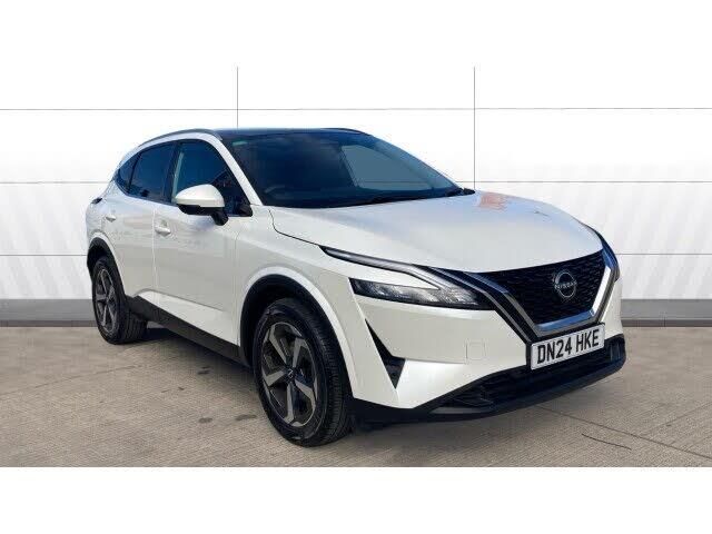 Drive in style with this 24/24 Nissan Qashqai 1.3 DiG-T MH 158 N-Connecta 5dr Xtronic finished in crisp white. With its bold front grille, alloy wheels, and sleek lines, this compact SUV stands out wherever you go. Inside, the N-Connecta specification offers part-leather seats, dual-zone climate control, and a touchscreen infotainment system with satellite navigation, Apple CarPlay, and Android Auto, keeping every journey comfortable and connected. Practicality meets modern tech with a versatile boot, flexible seating, and advanced safety features including intelligent emergency braking, lane departure warning, and adaptive cruise control. The 1.3 DiG-T MH 158 engine paired with Xtronic automatic transmission delivers smooth, responsive performance with excellent efficiency, perfect for city commutes or weekend adventures. Nearly new and beautifully presented, this Qashqai N-Connecta combines style, comfort, and practicality in a highly desirable package.