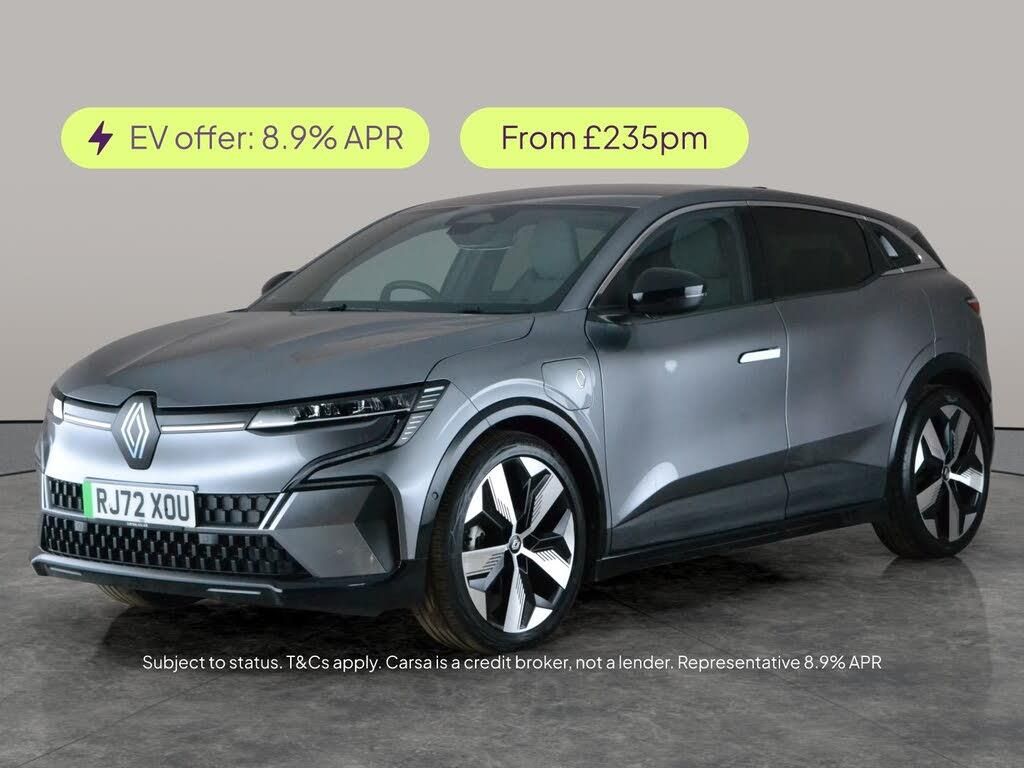 Experience the Renault Megane E-tech, a stunning grey electric hatchback with a stylish fabric and synthetic leather interior in grey and black. Enjoy the luxury of heated seats and a heated steering wheel, making every drive comfortable. Stay connected with Apple CarPlay and in-car WiFi, and navigate effortlessly using the built-in Sat Nav. The Megane E-tech makes parking simple with Park Assist, a reversing camera, and LED headlights, while safety features like adaptive cruise control, blind spot assist, and lane departure warning provide added peace of mind. 3 services recorded, last serviced on 09/12/2025 at 11,984 miles. MOT to 30/12/2026. Visit our website for service history, online valuation, full vehicle specification plus multiple images. This vehicle is VAT qualifying. Any feature/option specified here is from 3rd party data. We cannot guarantee the accuracy of any specification supplied by a 3rd party. We recommend that you physically check the specification of the vehicle on site prior to purchase. This information does not form part of the buying contract. Terms & Conditions apply. We have over 2,000 cars available from our 10 national branches, check our website to see all our stock. Our Trustpilot rating is 4.4/5 with over 9,000 reviews.