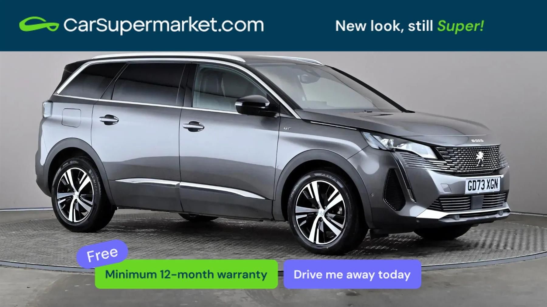 Sat Nav, Android Auto, Apple CarPlay, Bluetooth, Traffic Sign Recognition, Lane Departure Warning, Peugeot i-Cockpit, Parking Sensors;Peugeot 5008 1.2 Hybrid 136 GT e-DSC6 (Grey) A spacious and versatile SUV combining hybrid efficiency with modern technology and practicality. Includes sat nav, Android Auto, Apple CarPlay, Bluetooth, traffic sign recognition, lane departure warning, Peugeot i-Cockpit, and parking sensors. Minimum 12-month warranty. MOT due 30/01/2027.