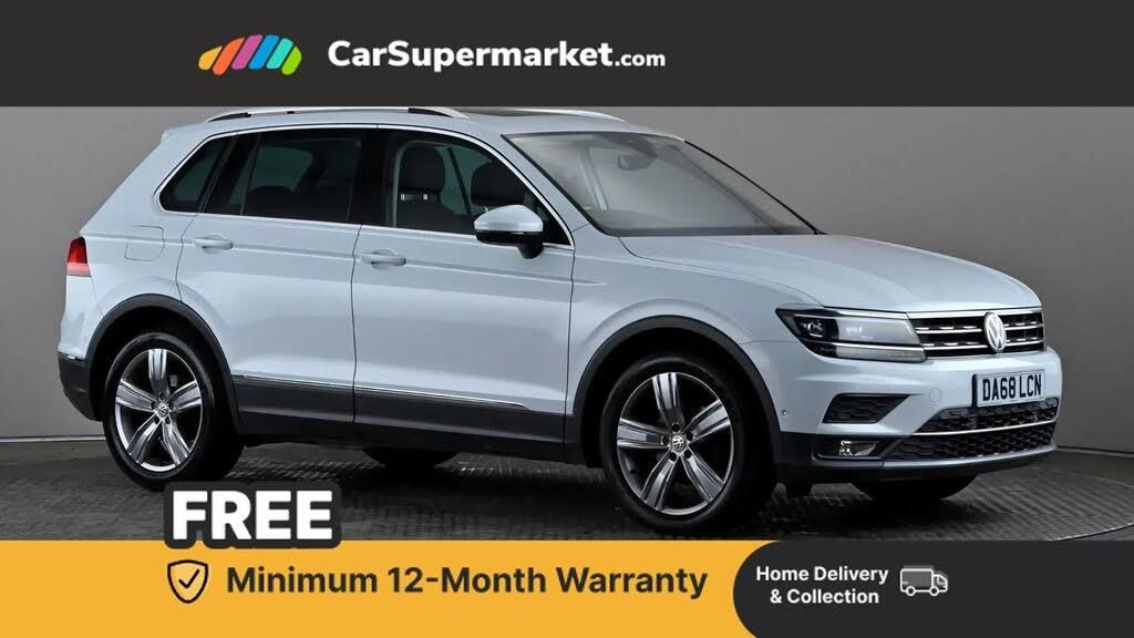 Active information display,Adaptive cruise control,App-Connect,Bluetooth phone integration system,Distance control assist,Fatigue detection system,Instrument cluster,Lane assist,Low washer fluid warning light,Outside temperature display,Service interval indicator,Speed limiter,Warning lights,Diesel particulate filter,XDS electronic differential lock,2x USB sockets in front,DAB Digital radio,MP3 compatible single CD player,SD card slot,Auto dimming interior mirror,Automatic activation of hazard warning lights,Black door protector with chrome inserts,Body colour door handles,Body colour door mirrors,Body coloured bumpers,Chrome side body trim,Chrome side window surrounds,Chrome trimmed radiator grille,Coming/leaving home lighting function,Dusk sensor + auto driving lights,Electric folding door mirrors,Electric heated + adjustable door mirrors,Electric panoramic sunroof with sunblind,Front and rear electric windows,Heated rear window,LED headlights with dynamic light assist daytime running lights and cornering front fog lights,LED rear lights,Rain sensor windscreen wipers,Rear windscreen washer and wiper with interval delay,Silver rear diffuser trim,Silver roof rails,Silver under body guard,Tinted windows (B pillar backwards),Windscreen wipers/ intermittent wipe + 4 position delay,12V Accessory socket in centre console,3 rear headrests,3 zone climate control,4 load lashing points,40:20:40 split folding rear seats,Bag hook in luggage compartment,Driver + front passenger lumbar support,Foldable passenger seatback,Front centre armrest with 12v socket,Front centre armrest with storage + rear 2 air vents + cupholders,Front seatback folding tables,Height/reach adjust steering wheel,Illuminated driver/passenger vanity mirrors,Illuminated scuff plates,Interior light with delay,Isofix Preparation 2 Rear child seats,Leather gear knob,Load through provision with 2 cupholders when folded,Lockable cooled glovebox,Luggage compartment lighting,Luggage compartment side storage,Map pockets on front seats,Passenger seat height adjuster,Passenger underseat drawer,Rear cupholders,Removable luggage cover,Sliding/reclining rear seats,Storage compartment in driver's door,Storage compartment in passenger's door,Storage compartment in rear doors,Storage tray on dashboard,Sunglasses storage,Variable boot floor,Ambient lighting pack - Tiguan,3 rear 3 point seatbelts,ABS+EBD+Brake assist,Active bonnet,Active pedestrian safety system,Curtain airbags,Driver/Front Passenger airbags,Driver/Passenger whiplash optimised head restraints,Drivers knee airbag,DTC - Drag torque control,Electronic parking brake with auto hold,ESP with EDL + ASR,First aid kit,Front assist including city emergency braking,Front side airbags,Head airbag system,Height adjustable front 3 point seatbelts + pretensioners,Hill hold control,Passenger airbag deactivate switch,Passenger knee airbag,Pre crash system,Rear side airbags,Seatbelt warning lamp and buzzer,Two tone horn,Warning triangle,Alarm with interior protection,Electronic engine immobiliser,Chrome door trim inserts,Piano black interior trim,Steel space saver spare wheel