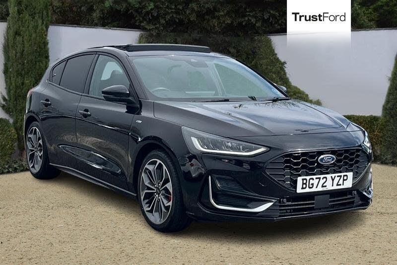 12.3 Digital instrument cluster, Bluetooth system, Digital clock, Easy fuel capless refuelling system, Eco mode, Ford SYNC4 Nav with 13.2'' touchscreen, DAB, Emergency Assistance, Apple Carplay & Android Auto, B&O Premium Audio with 10 speakers, FordPass Connect, Lane keeping system - lane keeping alert and lane keeping aid, PAS, Rev counter, Selectable drive mode, Service interval indicator, Trip computer, Wireless charging pad, Auto headlamps (on/off), Body coloured door handles, Electrically operated front and rear windows with one touch opening and closing, Electrically operated heated power fold door mirrors with puddle lamp with side indicators, Front variable intermittent wipers with electric wash, Heated rear window, LED daytime running lamp, LED rear lamps, LED third brake light, Polished twin tailpipe, Privacy glass, Quickclear heated windscreen, Rain sensor, Rear side wing doors, Tailgate wash/wipe, Unique ST-Line grille, full bodystyling kit, and large body coloured rear spoiler, 3 rear headrests, 3 seat bench in 2nd row, Dual zone electronic air temperature control, Full sensico premium upholstery, Height adjustable front headrests, Isofix child seat preparation, Load through ski hatch, Manual 2-way passenger seat adjust, Power 4-way driver seat adjust, with power lumbar adjust, Reach + rake adjustable steering column, Single front passenger seat, 3x3 point rear seatbelts, ABS+Electronic Brake force Distribution, Auto hold function, Driver airbag, EDL traction control, Electronic parking brake, Electronic stability control, Front and rear seatbelt reminder, Front inertia reel height adjustable seatbelts with pre-tensioners, Front passenger airbag, Front side airbags, Passenger airbag deactivate switch, Post collision braking, Pre collision assist with autonomous emergency braking and pedestrian/cyclist detection, Red brake calipers, Remote/power child rear door locks, Side curtain airbags, Three rear inertia reel lap/diagonal seatbelts, Tyre pressure monitoring system