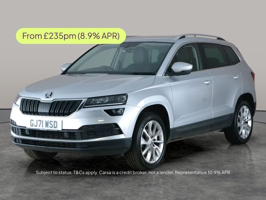 Experience comfort and style with this silver Skoda Karoq. Enjoy luxurious Alcantara and half leather heated seats, seamless keyless entry, and a crystal-clear reversing camera. Stay connected with Apple CarPlay and SmartLink, effortlessly guided by built-in Sat Nav. LED headlights ensure excellent visibility, while front and rear parking sensors make every manoeuvre easy. Dual zone digital climate control and Bluetooth audio streaming add the perfect finishing touch to this automatic petrol SUV. 3 services recorded, last serviced on 05/02/2026 at 27,009 miles. MOT to 11/02/2027. Visit our website for service history, online valuation, full vehicle specification plus multiple images. Any feature/option specified here is from 3rd party data. We cannot guarantee the accuracy of any specification supplied by a 3rd party. We recommend that you physically check the specification of the vehicle on site prior to purchase. This information does not form part of the buying contract. Terms & Conditions apply. We have over 2,000 cars available from our 10 national branches, check our website to see all our stock. Our Trustpilot rating is 4.4/5 with over 9,000 reviews.