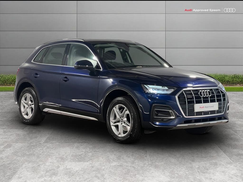 This 2021 Audi Q5 TDI Sport is a superb example, finished in desirable Navarra blue and having had just one owner from new. With 39,311 miles, it offers excellent provenance and is presented as an Audi Manufacturer Approved vehicle with a 12 month warranty for complete peace of mind. Powered by a strong 2.0 litre diesel engine paired with quattro four wheel drive, this Euro 6 compliant SUV delivers confident performance in all conditions. The Q5 combines performance with efficiency, achieving 062mph in just 7.6 seconds while returning up to 45 mpg, making it an excellent choice for both long distance driving and everyday use. It also offers a towing capacity of 2400 kg, adding to its versatility. Inside, the cabin is designed around comfort and connectivity. Heated front seats provide added comfort, while the Audi Wireless Smartphone Interface enables seamless Apple CarPlay and Android Auto integration. A Bluetooth interface ensures easy access to calls and media on the move. Practicality is a key strength, with generous boot space making it ideal for family life or longer journeys. Parking is effortless thanks to front and rear parking sensors with acoustic warnings and a rear view camera. Audi Approved Used Benefits 12 months Audi Warranty 12 months Audi Roadside Assistance 30 day exchange plan Up to 150 exacting checks Audi service with genuine Audi parts History and mileage checks 5 days complimentary Audi Drive Away Insurance (subject to eligibility) We have over 150 Approved Used Audis in group stock, including S line, Black Edition, e-tron, quattro, Sport, Vorsprung, RS and SQ models. Features may include panoramic roofs, heated seats, heated steering wheel, cameras, Apple CarPlay/Android Auto, keyless entry, adaptive cruise, Comfort & Sound and Tour Packs. Enquire for details..