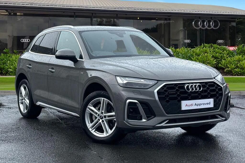 Powerful, sophisticated, and electrified, this Q5 S line 50 TFSI e quattro delivers 299 PS through a plug-in hybrid drivetrain with smooth S tronic transmission and quattro all-wheel drive. Combining sporty performance with electric efficiency, it's ideal for confident driving in every situation. The exterior makes a bold statement with S line styling, 19-inch 5-twin-spoke alloy wheels with diamond cut finish, Matrix LED headlights with dynamic indicators and coming/leaving home animations, LED rear lights, and privacy glass. S line bumpers, side skirts, and a subtle rear spoiler complete the athletic look, while chrome-plated exhaust trims and roof rails add refined detailing. Inside, the cabin blends luxury with sportiness. Twin front seats feature contrast stitching and 4-way electric lumbar support, while the 3-spoke multifunction leather steering wheel with S badging and gearshift paddles enhances driver engagement. Matt brushed aluminium inlays, high-gloss accents, and illuminated S line door sill trims reinforce the premium feel. Heated seats and deluxe 3-zone climate control ensure comfort for all occupants. Technology is fully integrated, with a 12.3-inch Audi Virtual Cockpit tailored for plug-in hybrids, MMI Navigation Plus on a 10.1-inch touchscreen, Audi Connect with Amazon Alexa, wireless smartphone interface, and voice control. The SONOS 8-speaker system delivers immersive audio, while multiple USB ports and remote pre-conditioning add convenience. Safety and driver assistance include Audi pre sense City, lane departure warning, multi-collision brake assist, reversing camera, front and rear parking sensors, and camera-based traffic sign recognition. This Q5 S line plug-in hybrid combines sporty styling, advanced technology, and electrified performance in a versatile premium SUV. This vehicle is compliant with Clean Air Zone (CAZ) or Ultra Low Emission Zone (ULEZ) regulations, meaning it produces low emissions and helps to improve air quality in our cities.