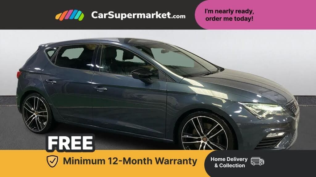 'Lights On' Reminder warning buzzer,3D map display,8" touch screen,Bluetooth Handsfree Phone Connection,CUPRA performance interface,Digital cockpit,Electro-mechanical progressive power assisted steering,Front and rear parking sensors,Front assist with pedestrian protection,Full Link Smartphone Integration with Mirror Link, Apple Car Play, Google Android Auto,Low fuel warning light,Navigation system (incl. media system plus),Outside temperature gauge,RPM counter,SEAT Drive profile CUPRA,SEAT logo boot release,Service interval indicator,Trip computer,Voice recognition,Dynamic chassis control,Lowered suspension,Mechanical limited slip differential,XDS electronic differential lock,2x SD card slot,4 USB,8 Speakers,Auxiliary input socket,Bluetooth audio streaming,CD player,DAB Digital radio,High resolution colour driver display,Media system plus (incl. media system colour),SEAT USB media cable,Steering wheel mounted audio/phone controls,Black radiator grille,Body colour door handles,Body coloured bumpers,Dark tinted rear windows,Electric front/rear windows,Electrically adjustable door mirrors,Electrically foldable exterior mirrors with parking position and passenger-side mirror with lowering function,Exclusive Cupra front and rear bumpers,Gloss black exterior mirrors with integrated LED indicators,Heated door mirrors,High gloss black finish B and C pillars,High gloss black front grille surround,Illuminated aluminium front door sill with CUPRA logo,LED front fog lights,LED headlights with LED day time running lights + LED rear lights + LED number plate lights,LED rear fog light,Rear wash/wipe,Visible dual exhaust pipes,12v power point in centre console,60/40 split folding rear seat with armrest,Active front headrests and 3 rear headrests,Additional heating and ventilation outlet in rear of centre console,Black roof lining,Boot storage net,Cargo rings in boot,Driver and passenger seat height adjust,Driver and passenger sun visor, covered and illuminated mirror, driver sun visor with card holder,Driver seat lumbar adjustment,Dual zone climate control,Dust/pollen filter,Flat bottomed perforated leather steering wheel with white stitching and CUPRA logo,Front adjustable head restraints,Front armrest with storage box,Front cupholders x 2,Front seatback storage pockets,Front sport seats in alcantara,Gear shift indicator,Height/reach adjust steering wheel,High centre console with integrated box & cup holder, rear air outlet, with armrest in front seats,Illuminated door sills,Instrument lighting with brightness control,Interior copper and black detailing,Luggage tie-down hooks,Multi-colour ambient interior lighting,Passenger seat lumbar adjust,Pedals with Aluminium Cover,Rear top tether child seat ISOFIX attachment,Steering wheel gearshift paddles,Storage box under drivers and passenger seat,3 point seatbelts on all rear seats,7 airbags - 2 front, 2 front side, 2 curtain, 1 knee,ABS + TCS,Child proof door locks,Electric handbrake,Electronic parking brake with auto hold,ESC with switch off key,ESC with tyre pressure warning indicator,ESP+EBA,Front and rear black brake calipers with cupra logo,Front seatbelt pretensioners,Front seatbelt reminder,Hill hold control,Manual passenger airbag deactivation function,Multi-Collision braking,Central locking fuel filler cap,Engine immobiliser,Locking wheel bolts,Remote central locking + deadlocks,Volumetric alarm with back up horn,Gloss black interior detailing,19" Cupra Machined alloy wheels 30/2