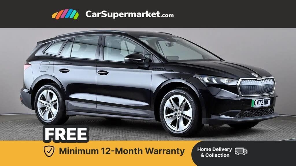 13" touchscreen display,Bluetooth system,E-call,Electronic engine sound,Exterior temperature indicator,Gesture control,Power assist steering,Rear parking sensors,Satellite navigation system,Skoda Connect iV remote services with charging, air conditioning and smart schedules,Smartlink wireless for apple carplay and wired for android auto,Speed limiter,Tailgate unlocking from outside,Virtual cockpit,Voice control system,Washer fluid level indicator,Wi-Fi hotspot,120 kW DC charging,6m mode 3 cable (32A),8 Speakers,DAB Digital radio,USB-C ports (charging + data),Auto dimming rear view mirror,Black roof rails,Body colour bumpers,Body colour door mirrors and handles,Door moulding light in multiple colours,Electric adjustable heated folding door mirrors with boarding spots and welcome logo,Electric front and rear windows,Heat insulating darkened glass in side and rear windows,Heat insulating glass in windshield,Heated rear window,LED third brake light,Light assistant (coming home/tunnel light),Radiator grille frame in matt black with chrome strip,Rain and light sensors,Rear side wing doors,Rear spoiler,Rear window wiper with washer system and intermittent control,Safety reflectors on front and rear doors,Variable front intermittent wipers,12V socket in boot,3 rear headrests,3 seat bench in 2nd row,4 foldable roof handles with rear coat hooks,60:40 foldable rear seat with sliding adjustment and backrest angle adjustment,Boot lighting,Coat hooks on B pillar,Front and rear footwell lighting,Front and rear height adjustable headrests,Front courtesy lights,Front reading lights,Height adjustable front passenger seat,High centre console,Illuminated and cooled glovebox,Interior door handle lighting in front and rear,Isofix child seat fittings in outer rear seats with top tether,Isofix child seat preparation for front passenger seat,Laminated soft-touch plastic knee rest,LED ambient lighting,Manual lumbar support for front passenger seat,Manually adjustable steering column,Pollen filter,Rear reading lights,Single front passenger seat,Sliding boot cover,Sunvisors with illuminated vanity mirrors,Umbrella in door panel,ECO Suite design pack - Enyaq,3 point height adj front seatbelts + pretensioners,Auto door release and activation of warning lights in the event of an accident,Central interaction airbag,Driver and front passenger airbags,ESC (incl. ABS+MSR+ASR+EDS+HBA+DSR+RBS+MKB),Front and rear three point safety belt on all seats,Front assist with assisted automatic braking,Front disc brakes,Front passenger airbag deactivation switch,Front side airbags with curtain airbags,Rear drum brakes,Single tone horn,Tyre pressure monitor,Visual and acoustic seat belt reminder,Warning lights in front doors,Anti theft alarm system with interior monitoring, backup horn and towing protection,Remote central locking with SAFE system,Anti-theft wheel bolts protection,Tyre repair kit with compressor