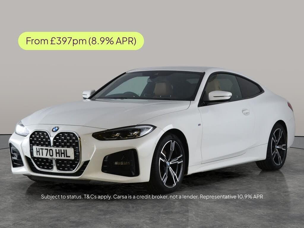 Experience sporty sophistication with this stunning white BMW 4 Series M Sport Coupe. Enjoy the added style of the M Rear Spoiler and relax in luxurious Vernasca leather heated seats. Equipped with LED headlights, Apple CarPlay, advanced Park Assist, and a clear reversing camera, driving is effortless. Stay safe with Active Lane Assist and Lane Departure Warning System, while BMW Live Cockpit Professional and Connected Package Professional keep you seamlessly in control. This car unites performance and technology for a truly impressive drive. 1 service recorded, last serviced on 17/02/2026 at 18,663 miles. MOT to 19/02/2027. Visit our website for service history, online valuation, full vehicle specification plus multiple images. Certain features listed may be available via subscription packages at extra costs, please consult with BMW for details. This vehicle is VAT qualifying. Any feature/option specified here is from 3rd party data. We cannot guarantee the accuracy of any specification supplied by a 3rd party. We recommend that you physically check the specification of the vehicle on site prior to purchase. This information does not form part of the buying contract. Terms & Conditions apply. We have over 2,000 cars available from our 10 national branches, check our website to see all our stock. Our Trustpilot rating is 4.4/5 with over 9,000 reviews.