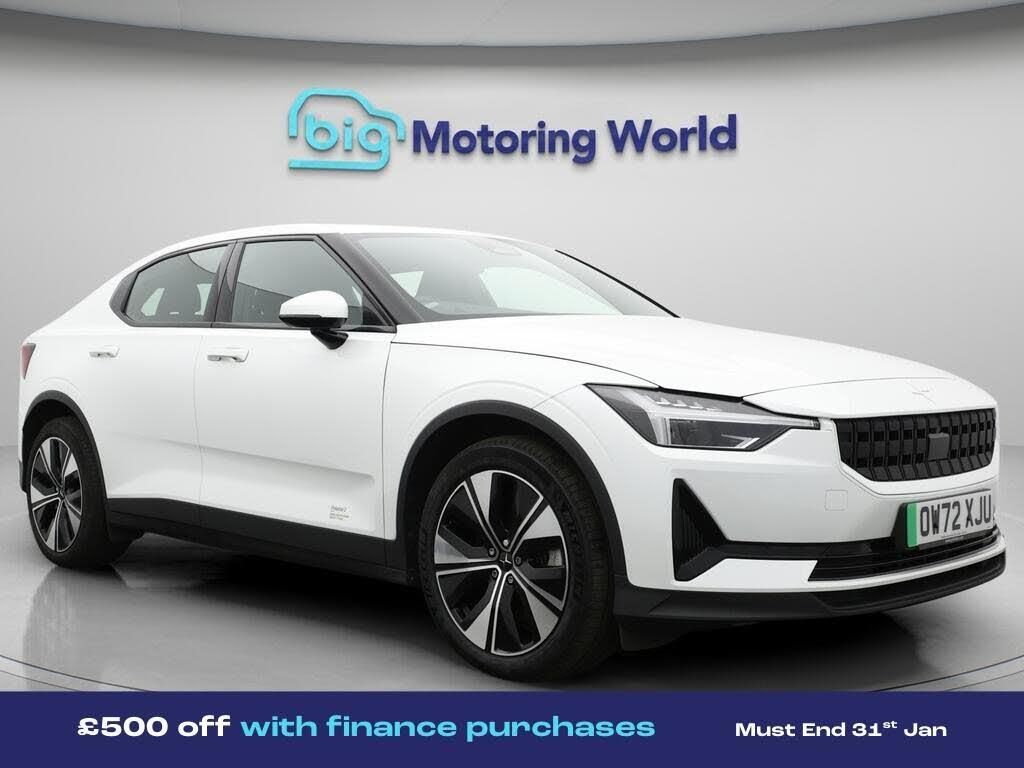 £500 towards your finance depo-Our Polestar Polestar 2 is finished in White. Specification includes a range of fantastic features including £500 towards your finance deposit, Dynamic Chassis Control, Electric Seats, Heated Seats, Rear View Camera, Internet, Bluetooth, Adaptive LED Headlights, 2 Zone Climate, Cruise Control Specification information is supplied by CAPHPI and may vary to the actual car. This data does not form any part of a buying contact. Please check specification prior to purchase in-store. The MOT is valid until February 2027, visit bigmotoringworld.co.uk for more photos, a 360 tour, service history and a free HPI report.Were BIG on peace of mind and this White Polestar Polestar 2 has completed our comprehensive 200 point inspection and passed all checks. Its ready for you to drive away with immediate collection in-store. We include a 90-day warranty as standard plus an option to extend for up to 3 years.Reserve this car exclusively for you, safely and securely at bigmotoringworld.co.uk, with a fully refundable £99 deposit. Test drive before you buy, with no commitment, no hassle and a completely haggle free experience. Still searching and want to see thousands more cars? We are BIG on choice with over 8000 cars to choose from.Visit our award winning web site bigmotoringworld.co.uk.Were Big Motoring World and were BIG on what matters to you.